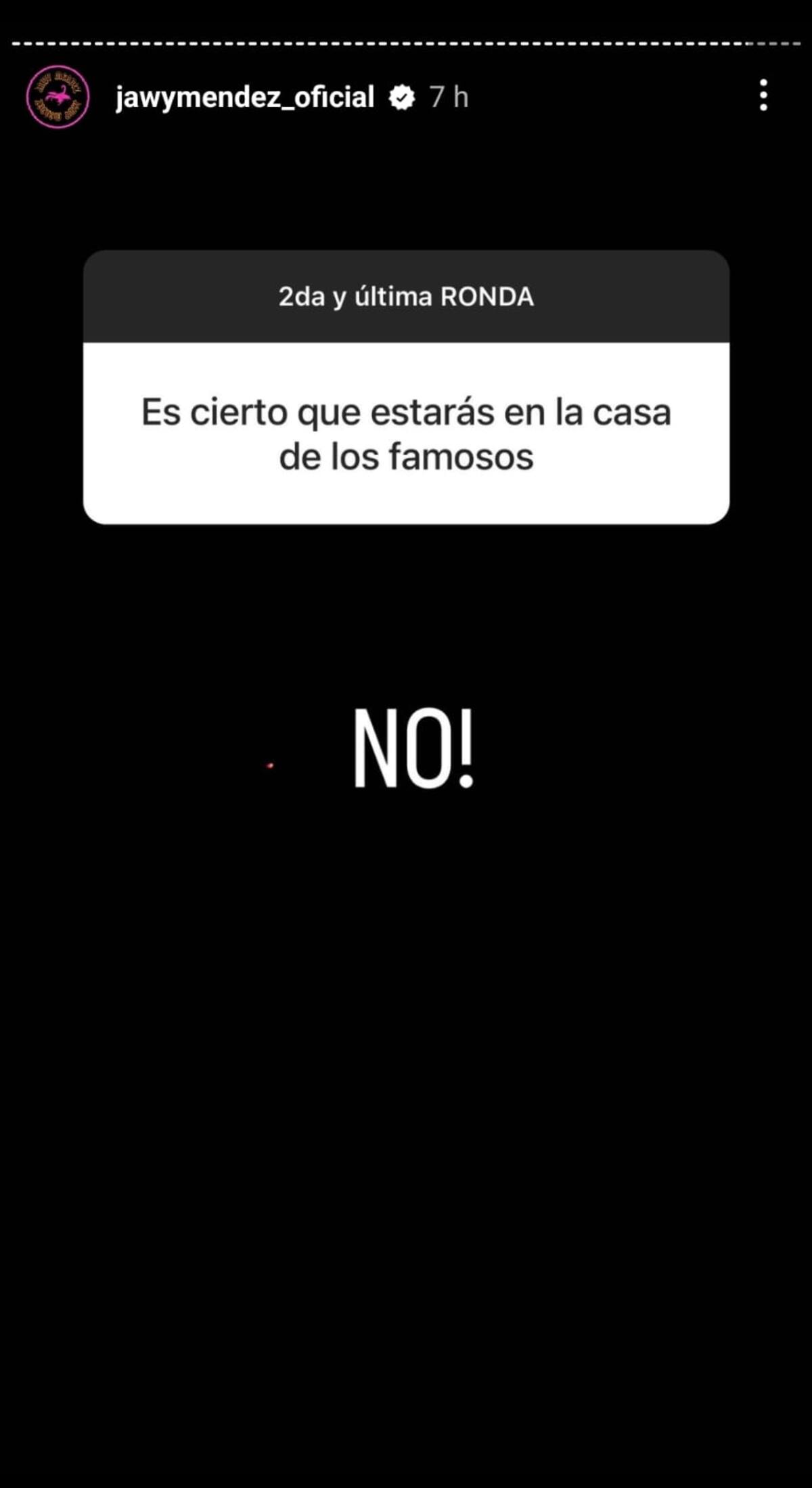 Sin embargo, alguien que ha estado en el centro de atención es el joven de reality, Jawy Méndez, conocido por su participación en Acapulco Shore y por ganar la primera temporada de Hotel VIP. Jawy subió el logo de La Casa de los Famosos a sus historias de Instagram, aunque lo tapó un poco con unos rayones.