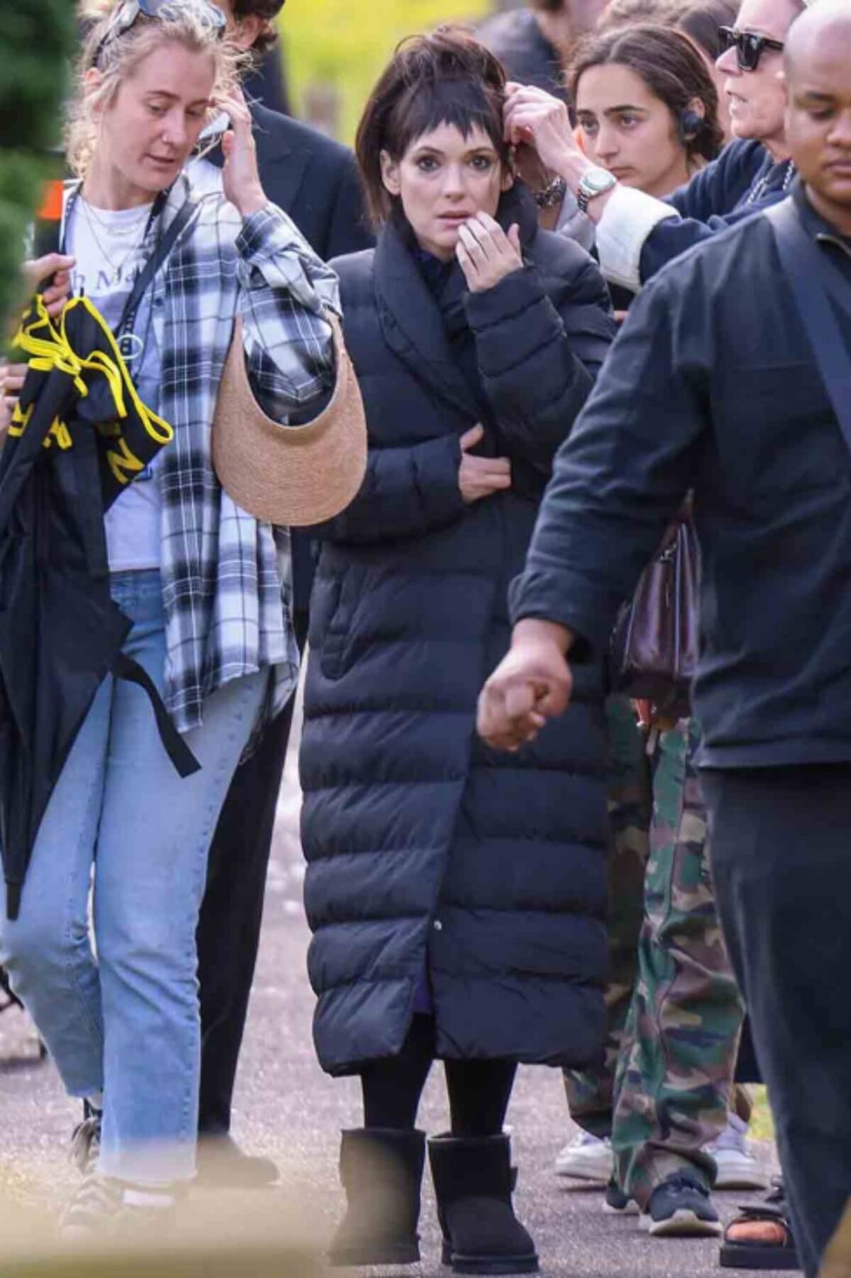 Ryder presenta un peinado similar al de la película de 1988 y, aunque su vestuario no es visible debido a un largo abrigo, se menciona que está vestida con el característico negro de su personaje gótico.