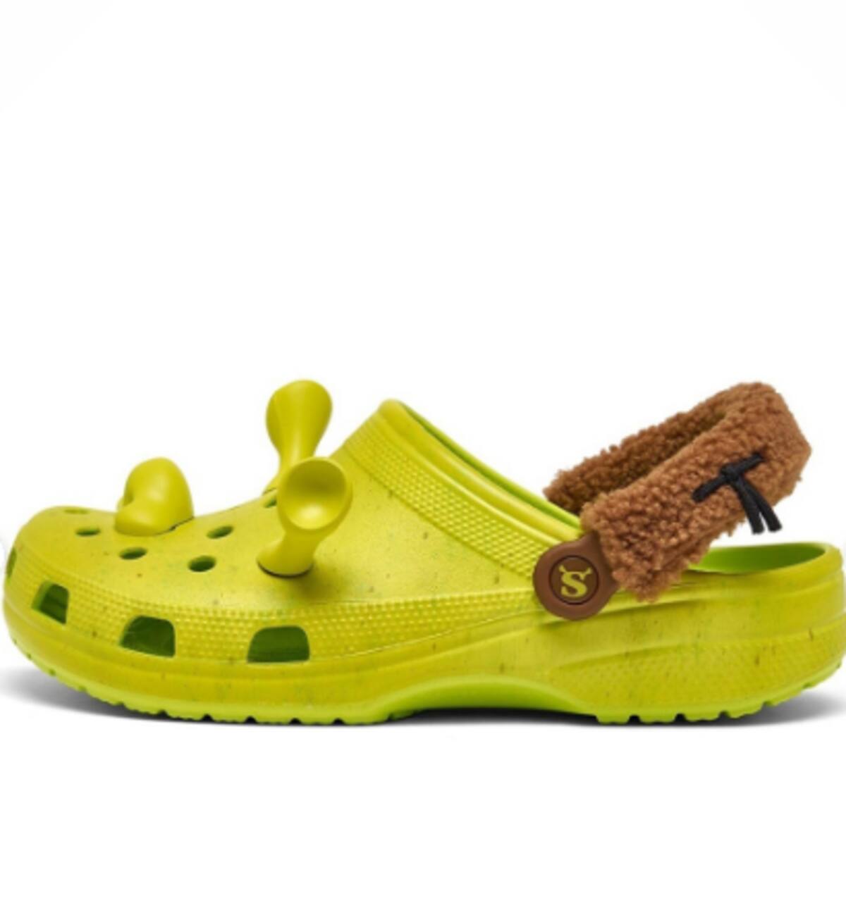 La nueva colaboración dará lugar a un modelo de sandalia inspirado en el amado personaje de la película. Esta silueta se basa en el diseño clásico de Crocs, conocido como Classic Clog, pero con un giro ogro. El calzado presenta un tono de piel que coincide con el color del personaje de Shrek, con pequeños puntos oscuros que añaden textura y autenticidad a su apariencia.