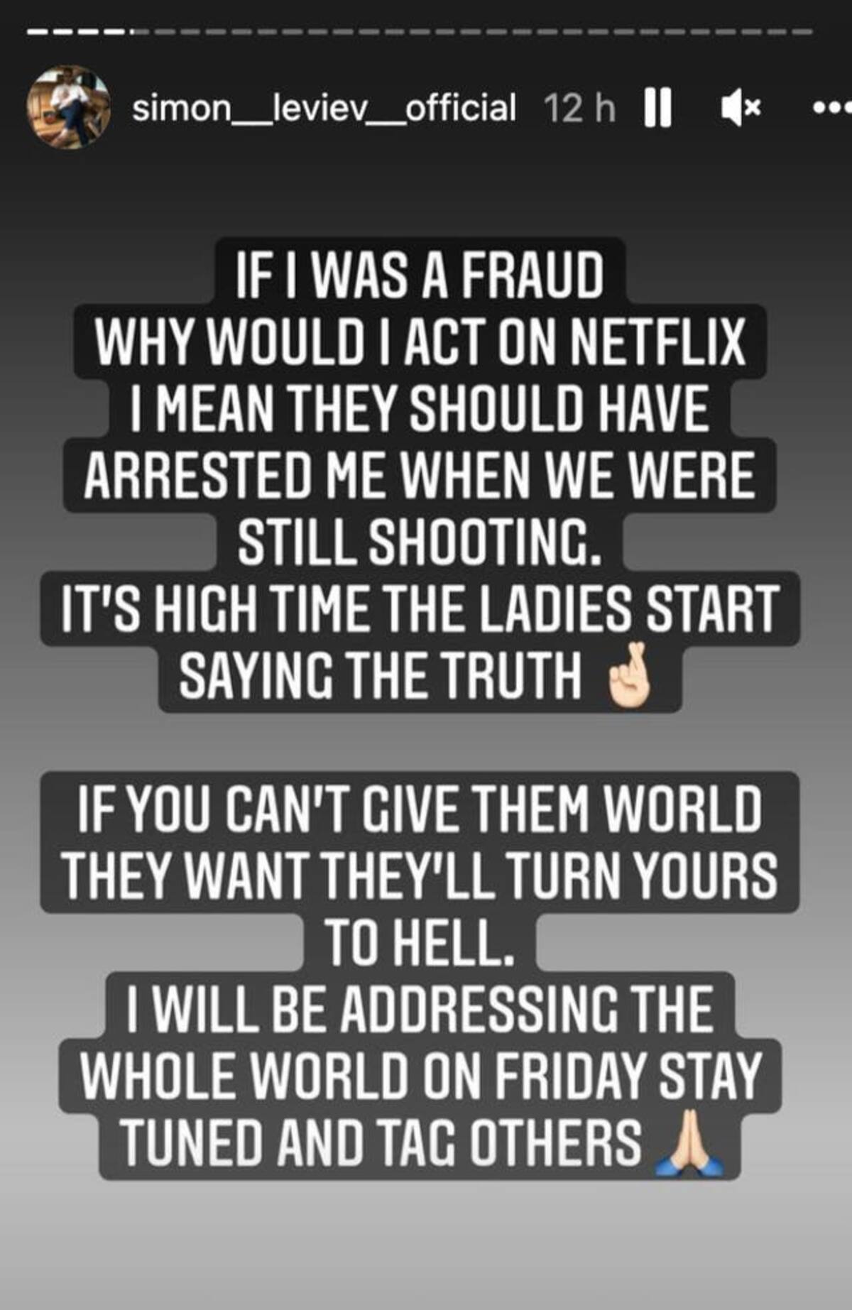 Sin embargo, este lunes, 07 de febrero, “Simon Leviev” regresó a su cuenta de Instagram para defenderse de las acusaciones de sus víctimas.