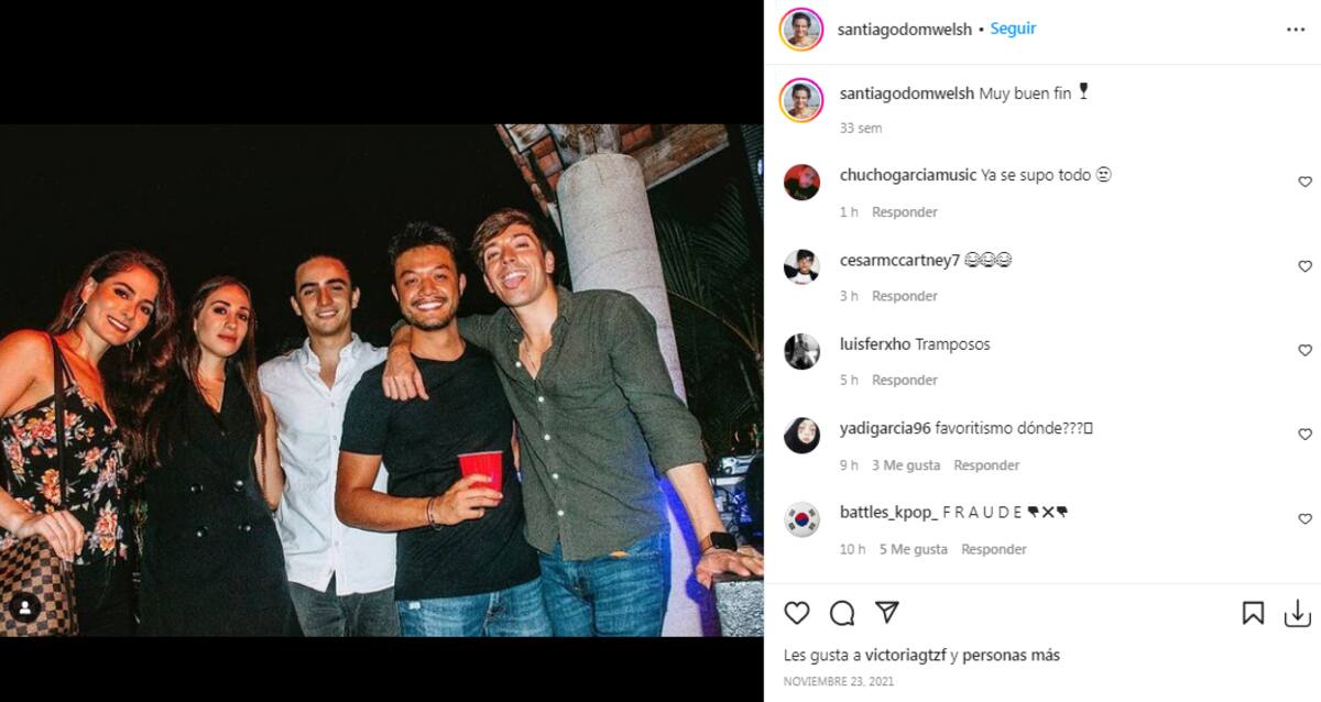 La viral foto se encuentra disponible en la cuenta oficial de Instagram de Santiago, donde con la descripción “Muy buen fin” y un emoji de copa con vino se le puede ver abrazado de los presentadores.