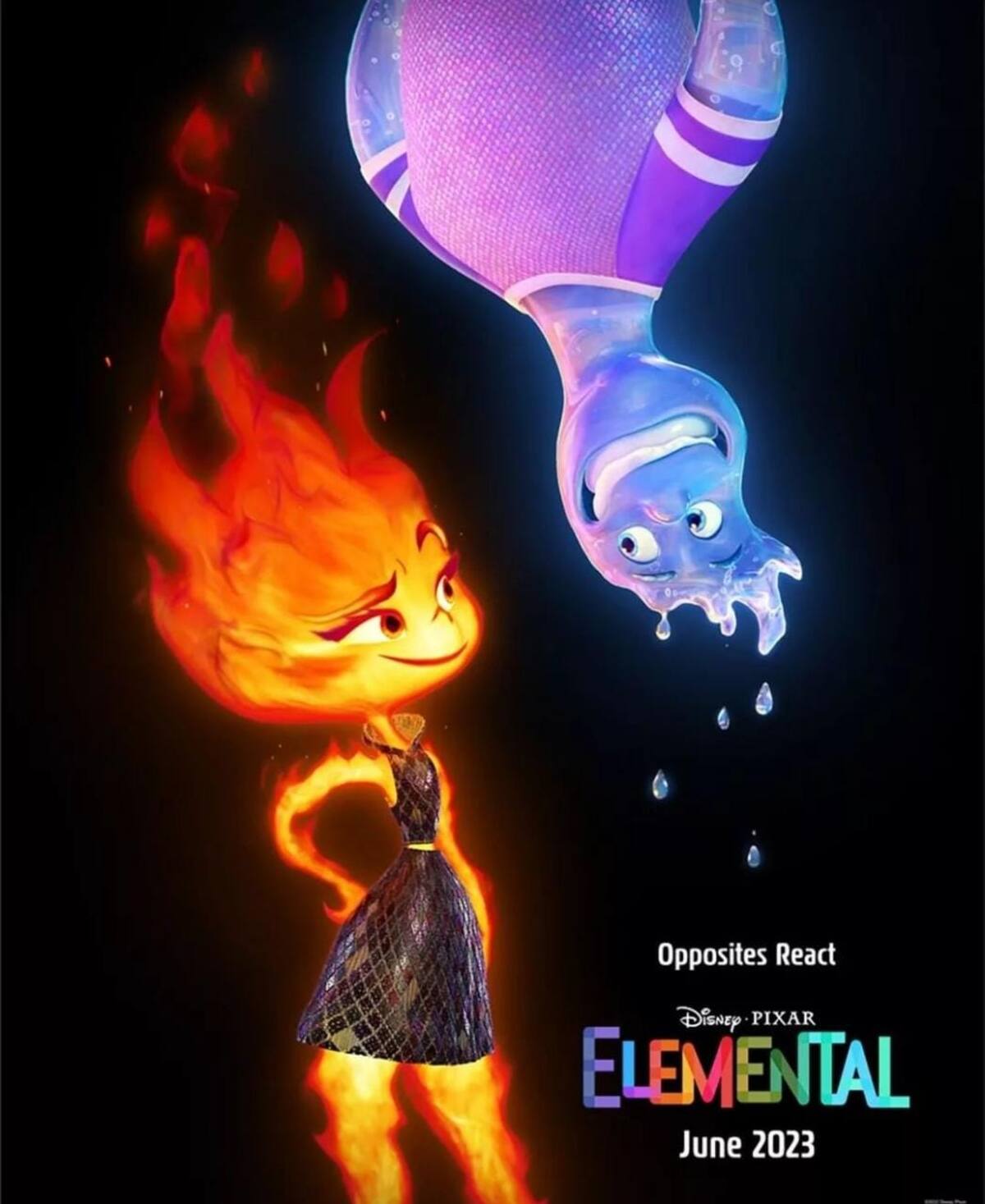 Animación compuesta de dibujos, colores, texturas, transparencias e imágenes creadas por ordenador (CGI, en inglés) que se fusionan, alteran y transforman cada vez que Ember Lumen (fuego) y Wade (agua) interactúan entre ellos o con un entorno conformado también por otros dos elementos de la naturaleza: la tierra y el aire.