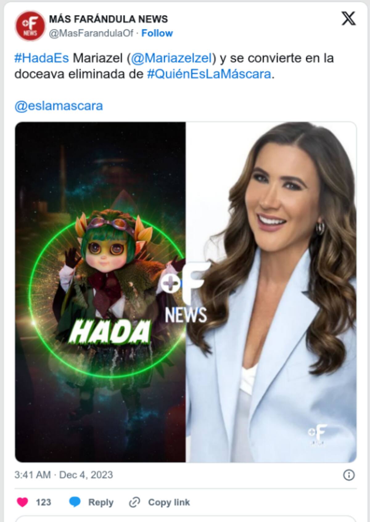 El misterioso personaje Hada, que había cautivado a la audiencia con su encanto y habilidades en el escenario, fue finalmente revelado como la talentosa Mariazel, conocida por su trayectoria como conductora, actriz y modelo española de 42 años.