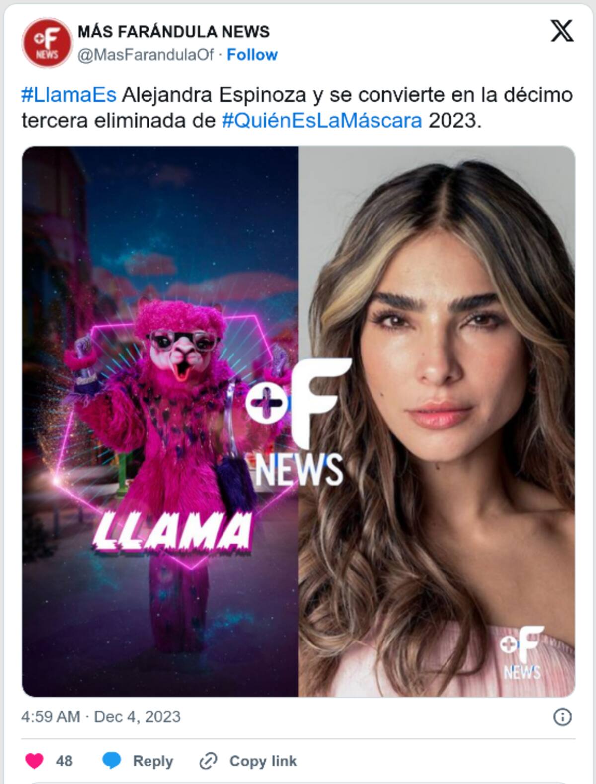 Por otro lado, la identidad detrás de la enigmática máscara de Llama sorprendió a todos al ser revelada como la carismática Alejandra Espinoza.