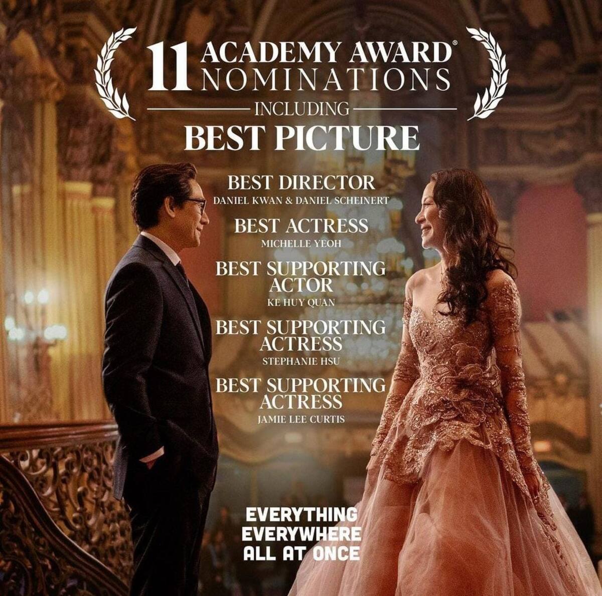 Sin duda, dentro todos los títulos que se encuentran participando por un Oscar este año, destaca la película “Everything Everywhere All at Once”, logrando un total de 11 nominaciones.