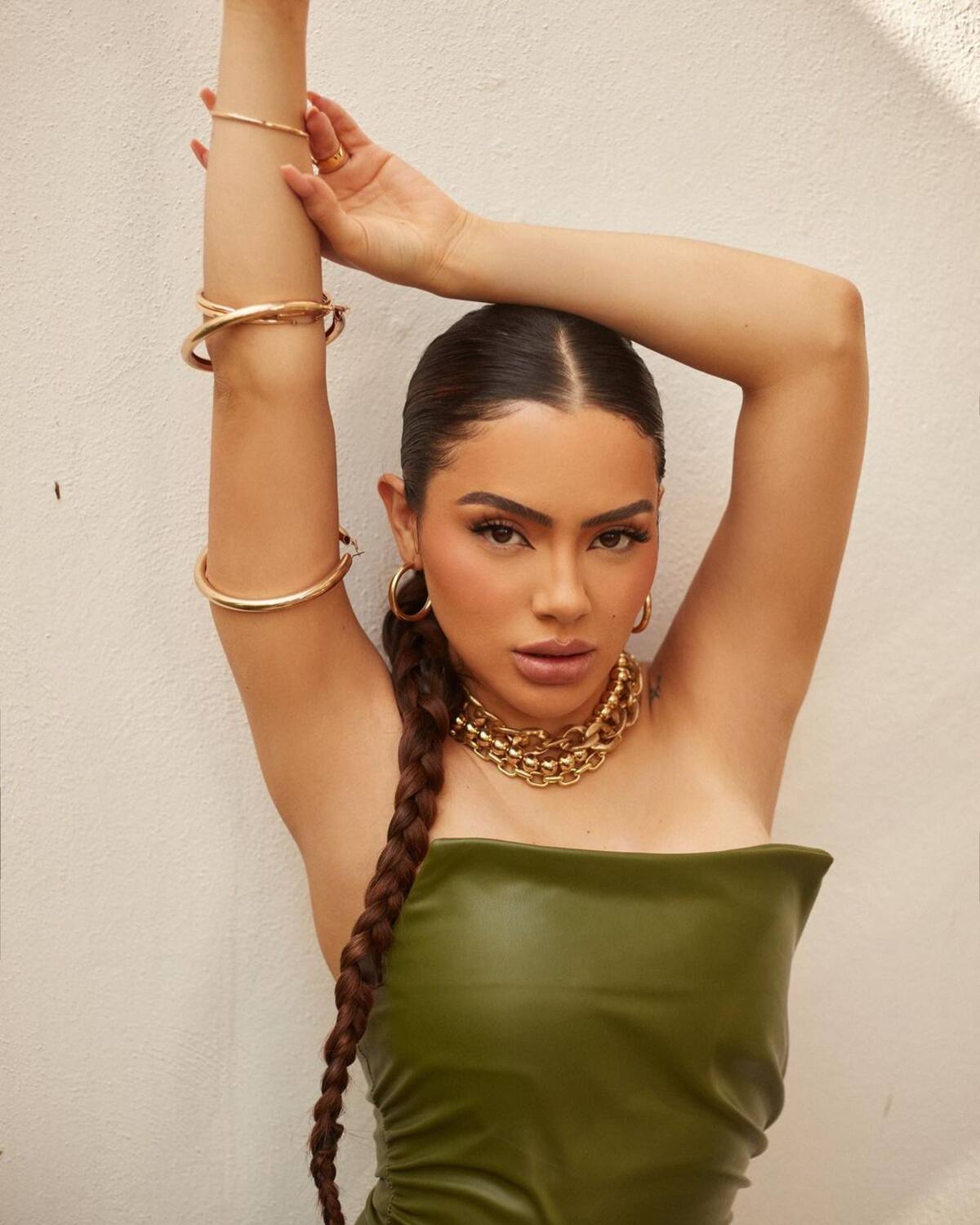 A través de su perfil de Instagram, la guapa actriz conocida por su participación en la serie “Mariposa de Barrio” y en la telenovela “Atrévete a Soñar”, compartió un par de instantáneas donde aparece enseñando su figura con un body color nude.
