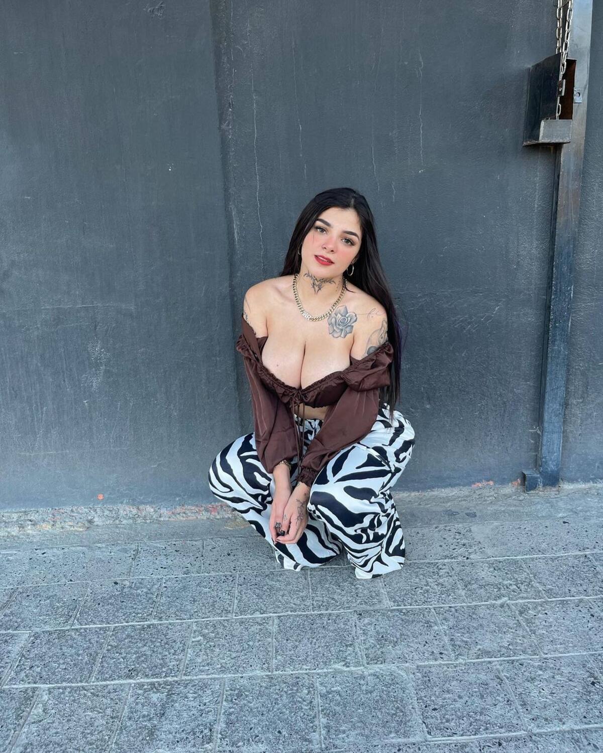 Para hacer una de las fotos, Karely posó sobre una silla, sin embargo, en la siguiente se ve a la famosa tomándose una selfies solo a su cuerpo.