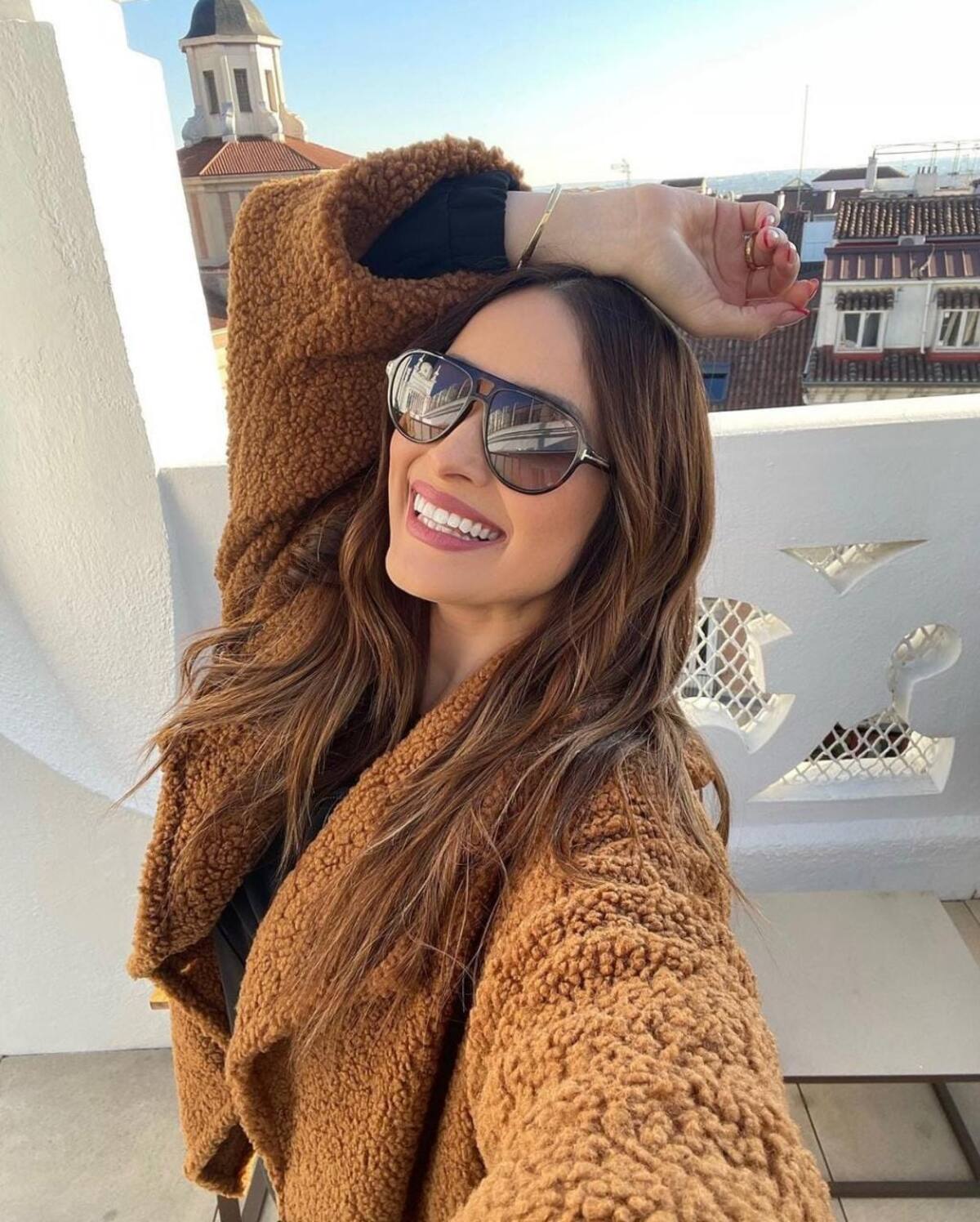 En la imagen se puede ver a la conductora de pie, con los ojos cerrados y regalando una gran y bella sonrisa para sus miles de fans, causando gran sensación.