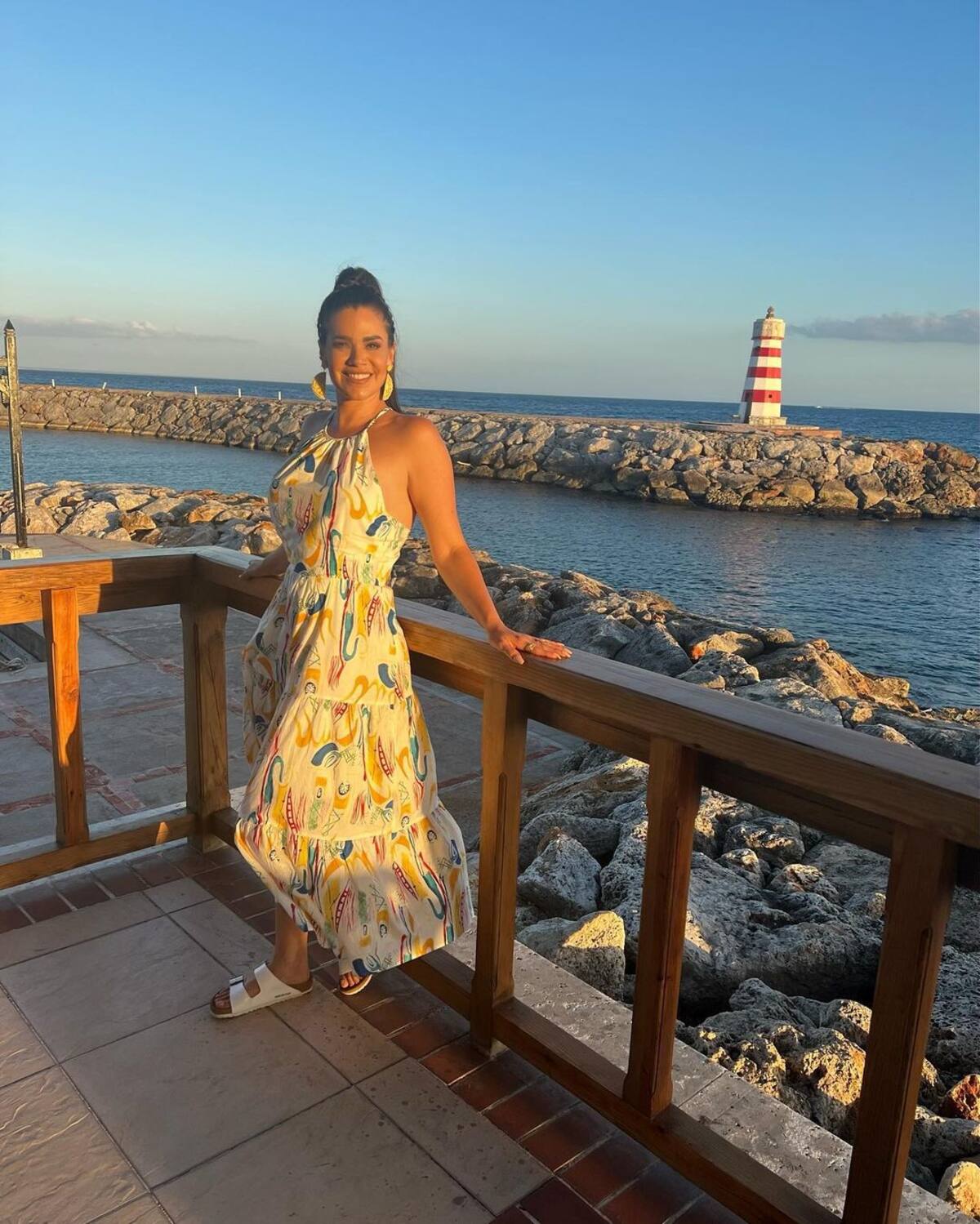 Sin embargo, una de las imágenes que llamó la atención de sus casi dos millones de seguidores es donde posa dentro del mar con un bikini de dos piezas con estampado floreado, atuendo que combinó con gafas de sol.
