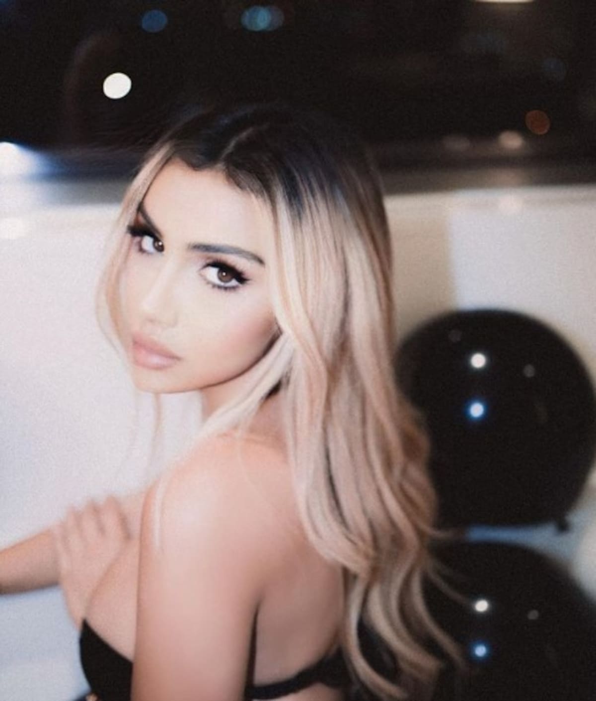 Para hacer este video, Alexa Dellanos usó un bikini de dos piezas en color negro, el cual acompañó con diversos accesorios.