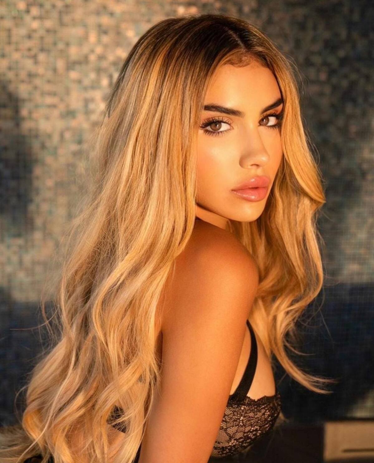 En la tercera foto, la influencer aparece recostada, en tanto que su rubia cabellera cae por sus hombros, además de hacernos testigos de sus grandes encantos, bellamente acentuados por su corsé.