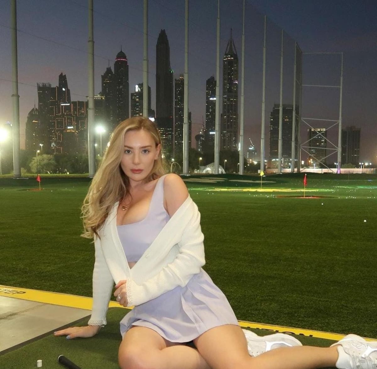 Para la primera imagen nos topamos con la influencer recargada en su brazo izquierdo, mientras que con el derecho sujeta su rubia cabellera, todo esto mientras se encuentra sentada, usando su candente bikini, el cual deja al descubierto sus enormes encantos.