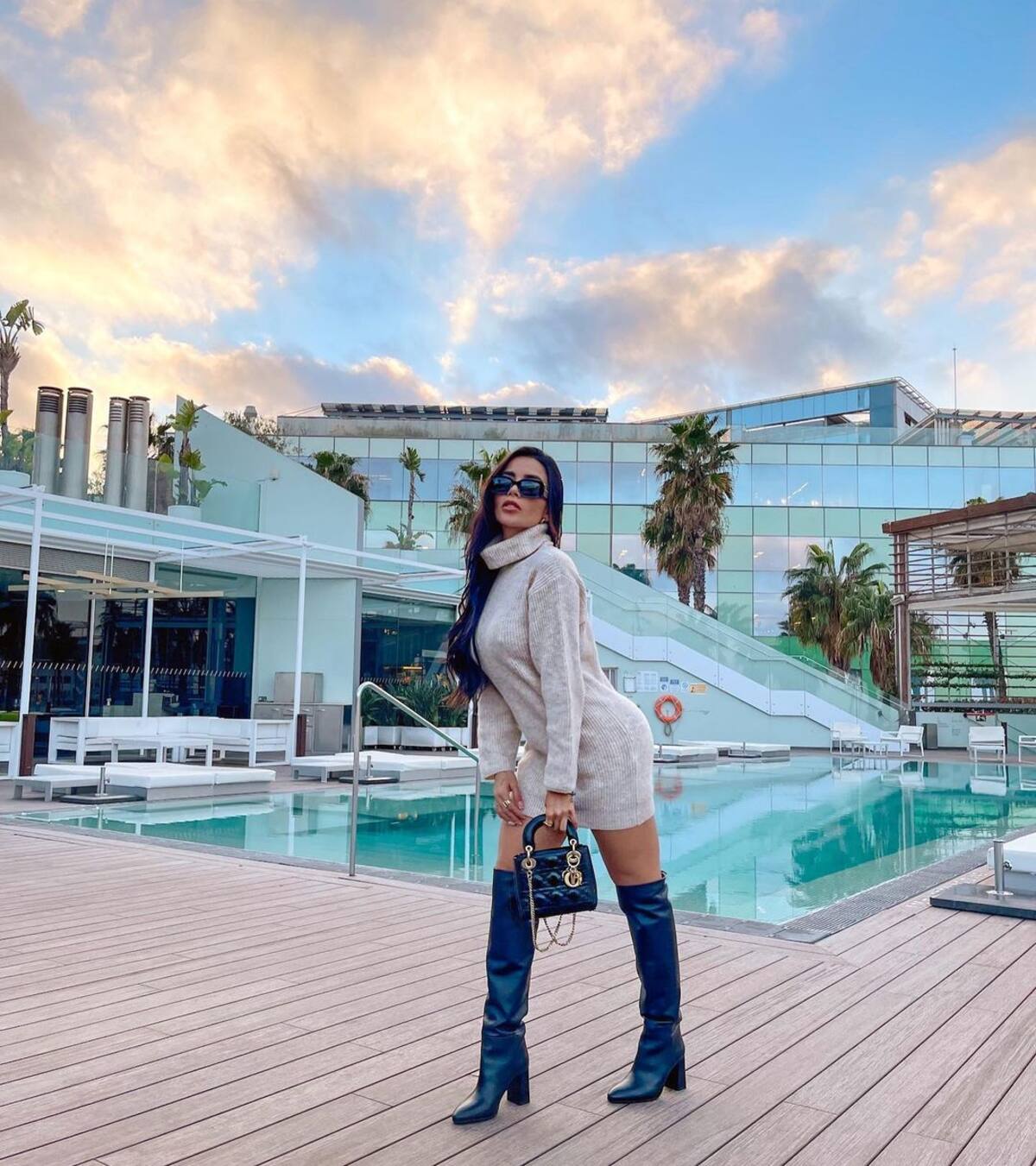 En la imagen se ve a la ex integrante de “Acapulco Shore” con un body negro que apenas cubría sus encantos, atuendo que combinó con guantes y botas altas.