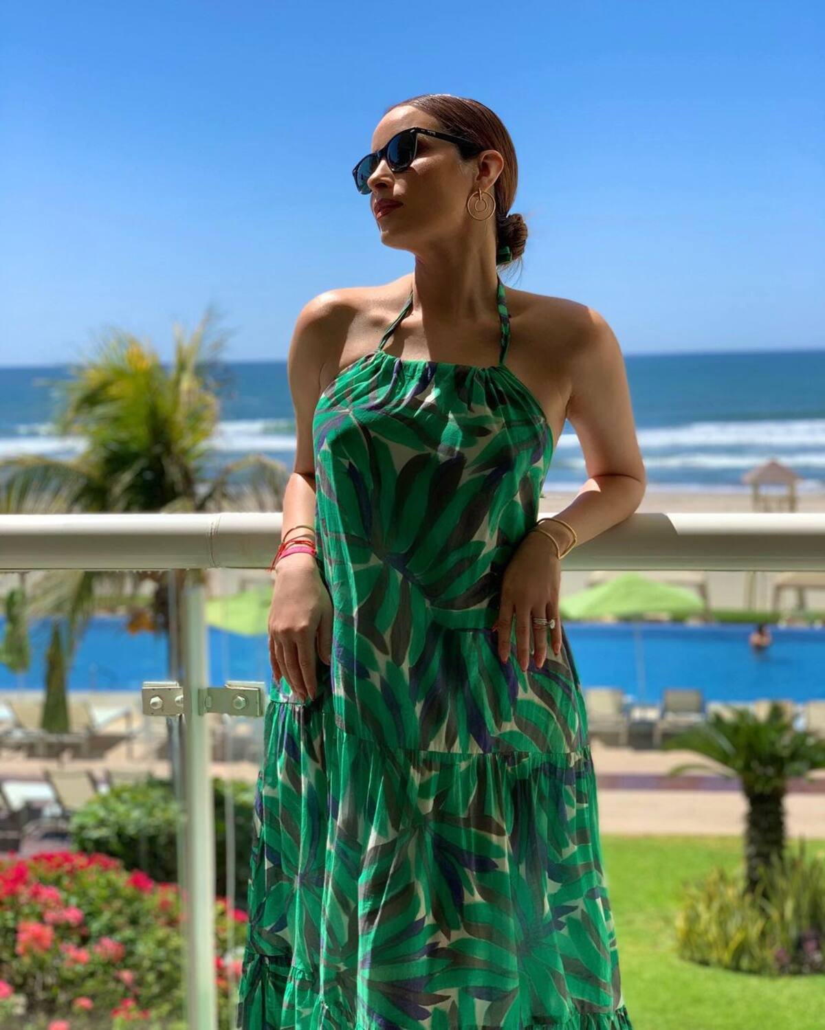 A través de su perfil de Instagram, la ex conductora de “Venga la Alegría” compartió un par de imágenes donde aparece luciendo un bikini completo en color rosa con estampado de flores azules, atuendo que combinó con lentes de sol y diversos accesorios.