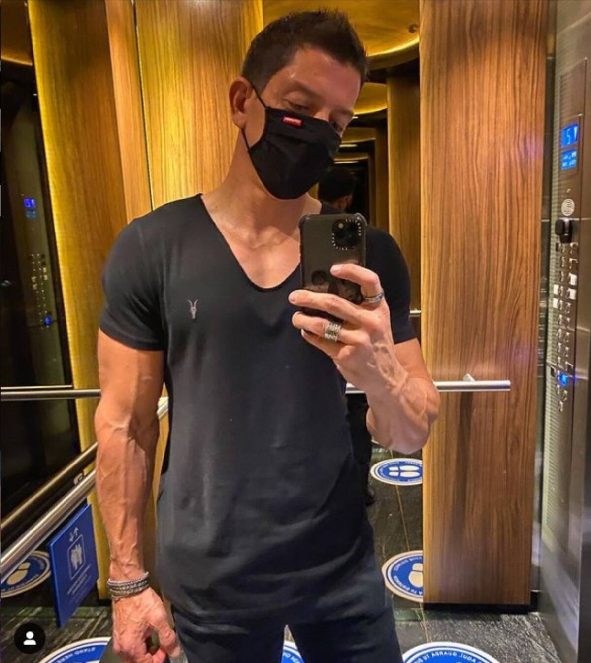 En las fotos se ve a Yahir luciendo su envidiable figura con un short negro y sin camisa, mientras voltea coqueto a la cámara.