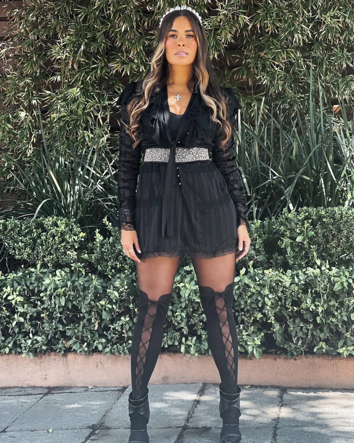 Además, para hacer resaltar su outfit utilizó un cinto plateado, diversos accesorios y una diadema blanca.
