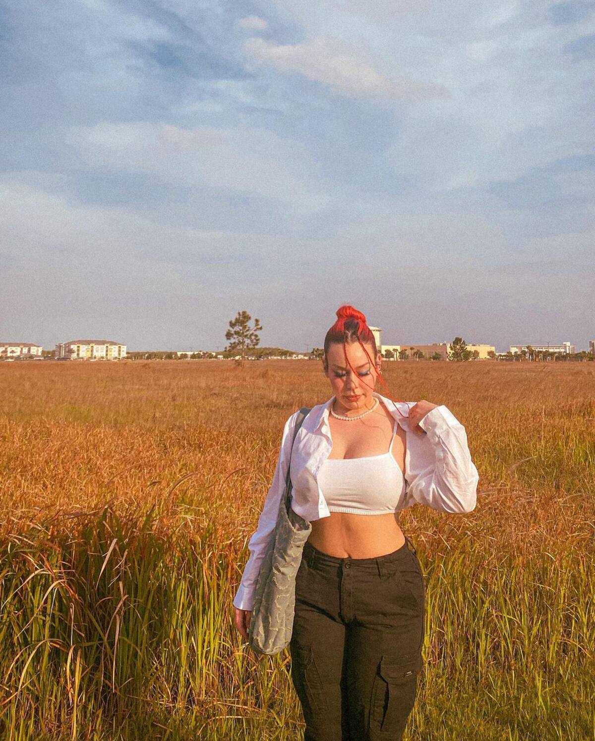 La maquilladora profesional de 26 años compartió en su cuenta de Instagram (@jesaaelys) una publicación donde aparece luciendo un bikini de dos piezas tejido, el cual combinó con una camisa verde.