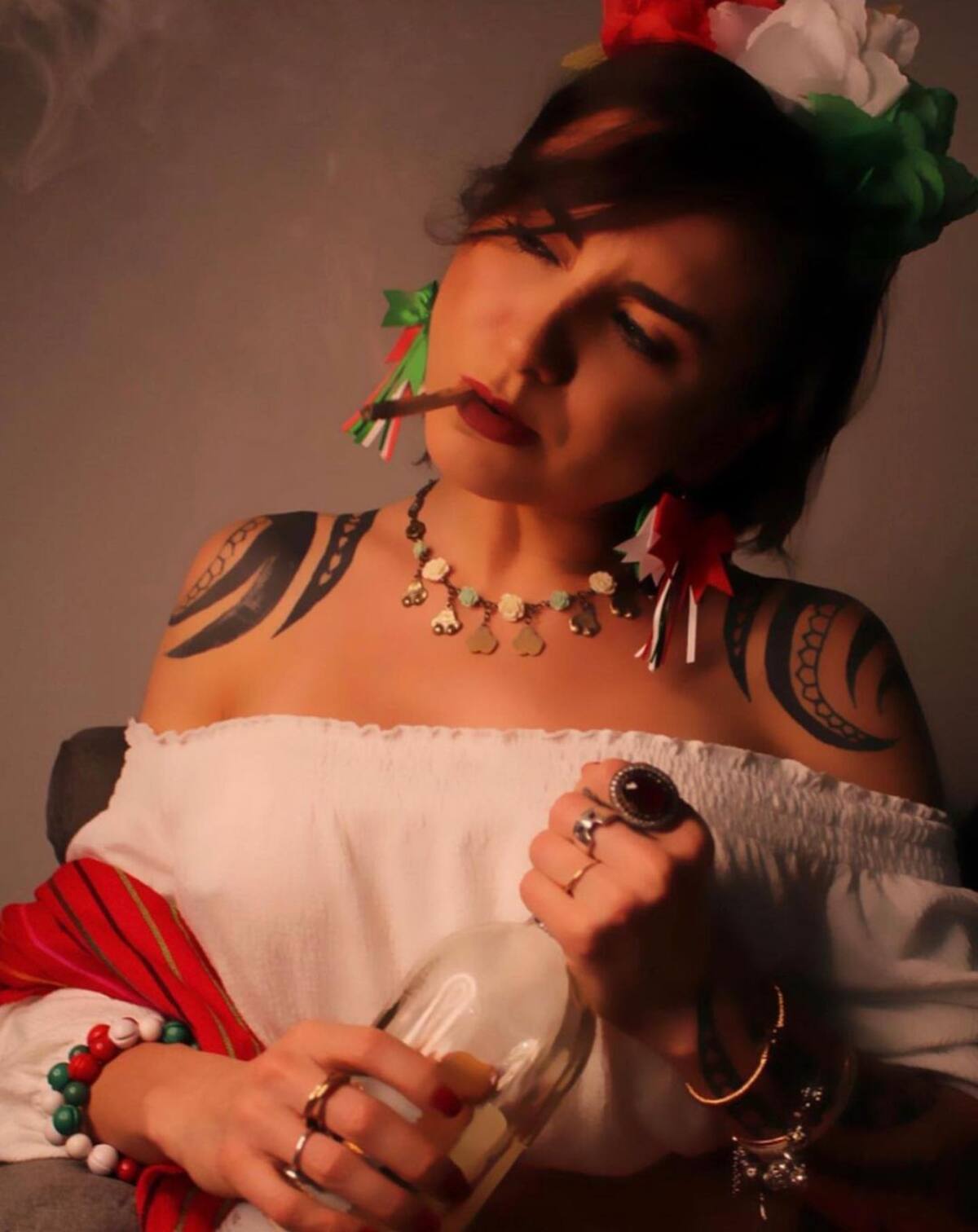 Para hacer estas fotos más representativas, la famosa se fumó un cigarro y se bebió un shot de tequila.
