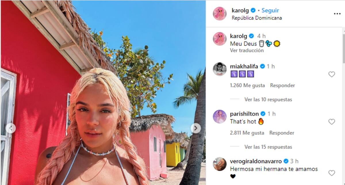 Durante su escapada playera, “La Bichota” compartió en Instagram una publicación con tres fotos en las que se la ve relajándose a orillas del mar usando un diminuto bikini. La publicación generó gran impacto entre sus seguidores, acumulando rápidamente más de 1 millón de likes y recibiendo numerosos elogios por parte de sus admiradores.