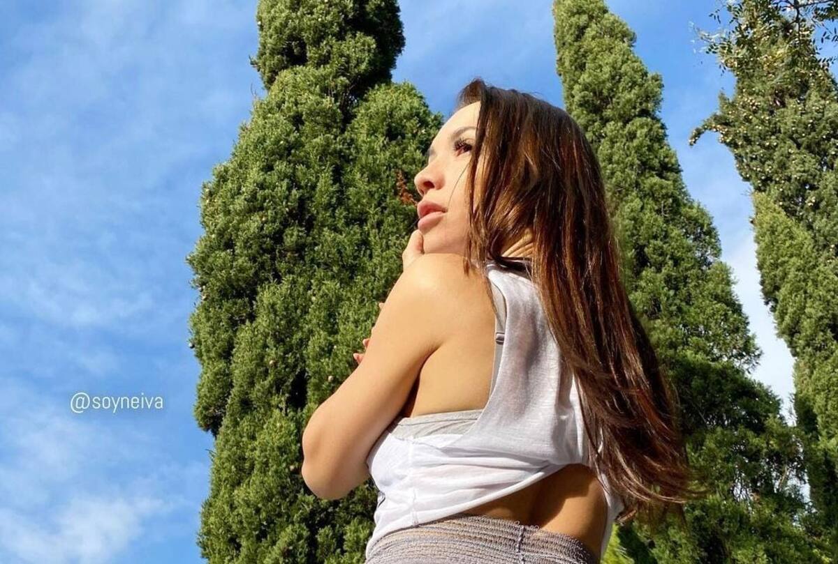 En la segunda imagen, Neiva aparece sentada de lado, en tanto que toca su cabeza con la mano izquierda y nos hace testigos de su sorprendente retaguardia.