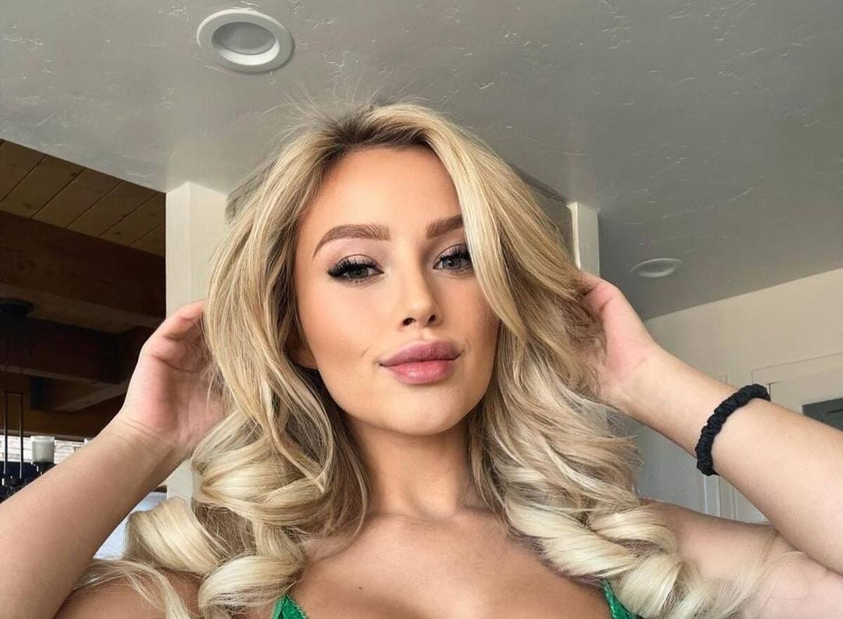 Para la segunda postal la influencer se muestra sentada, luciendo sus torneadas piernas mientras toca su larga cabellera rubia, emocionando a sus fans.