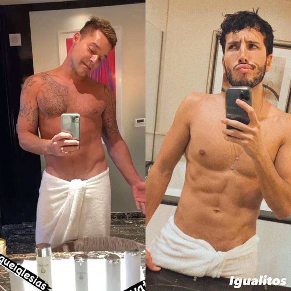 ESTADOS UNIDOS.- Ricky Martin y Sebastián Yatra robaron suspiros este fin de semana al mostrar sus cuadritos envueltos en una toalla.