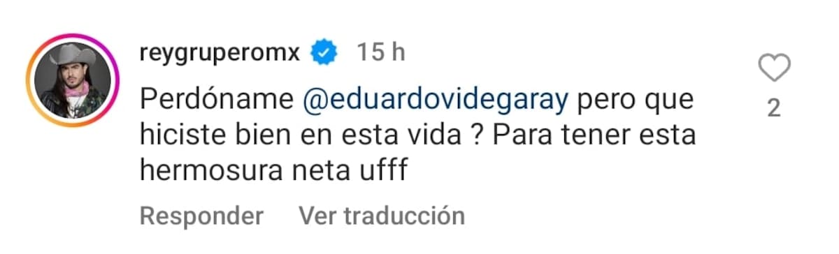 Entre los comentarios más destacados se encuentran el de la Barby Juárez, quien le escribió “amiga qué perris, tú muy bien”, y el de Rey Grupero, youtuber de bromas pesadas, quien le dedicó un mensaje a Eduardo: “Perdóname, Eduardo Videgaray, pero, ¿qué hiciste bien en esta vida para tener esta hermosura? Neta, uff”.