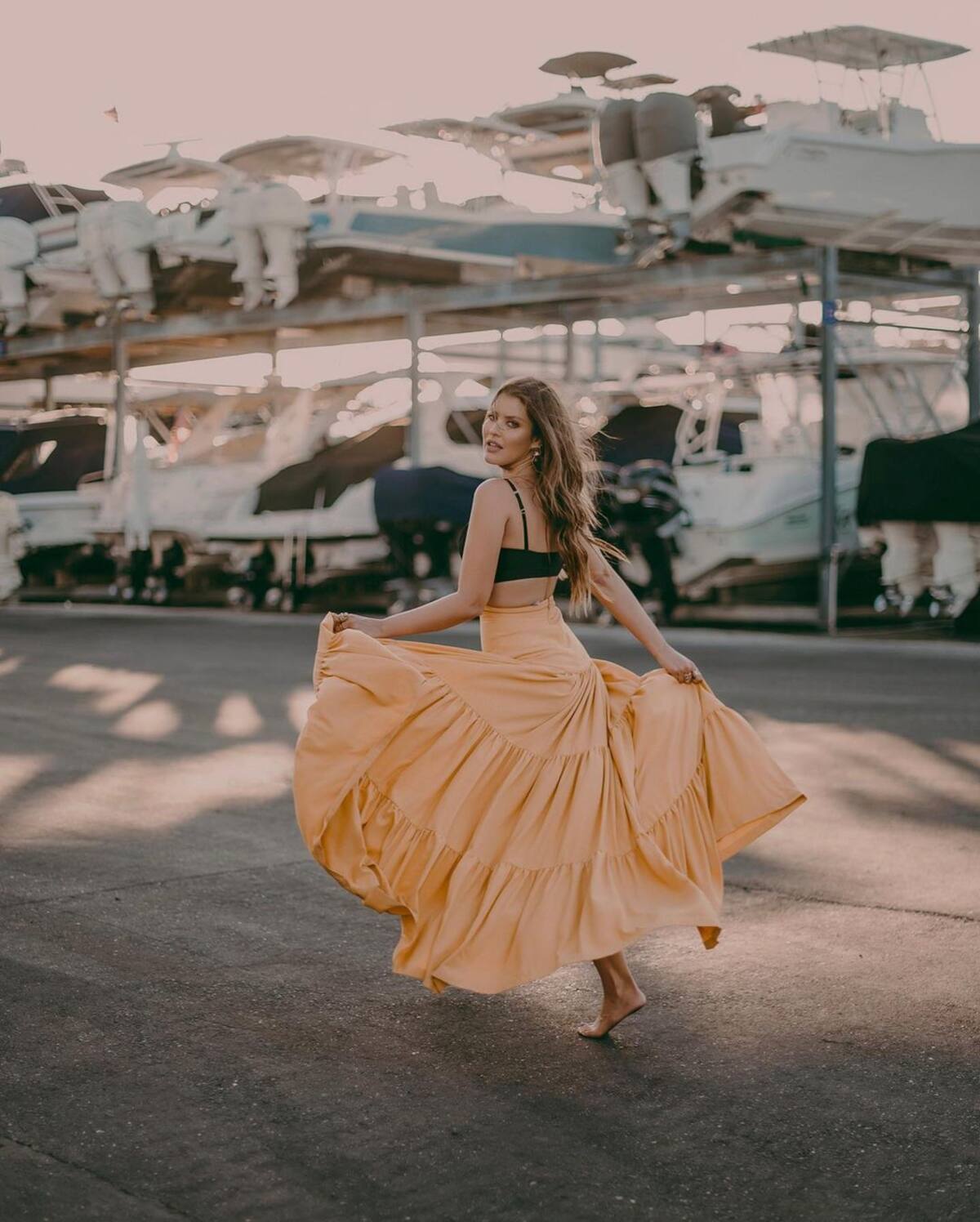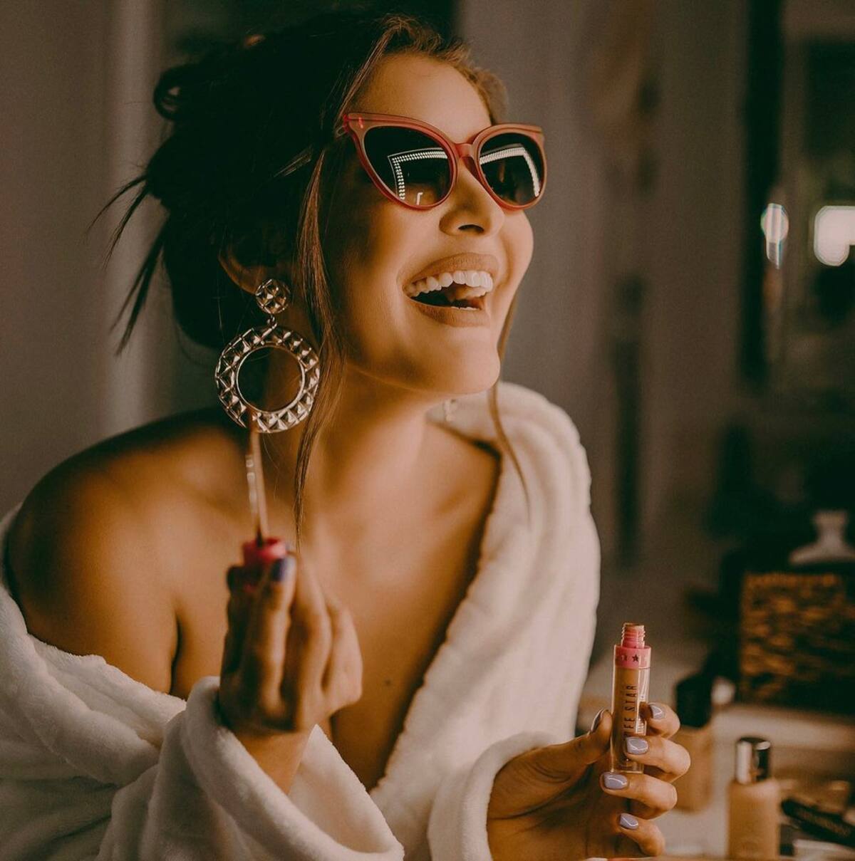 Para hacer estas fotos, la conductora dejó su larga cabellera suelta u usó un maquillaje bastante natural y posó junto a unas palapas.