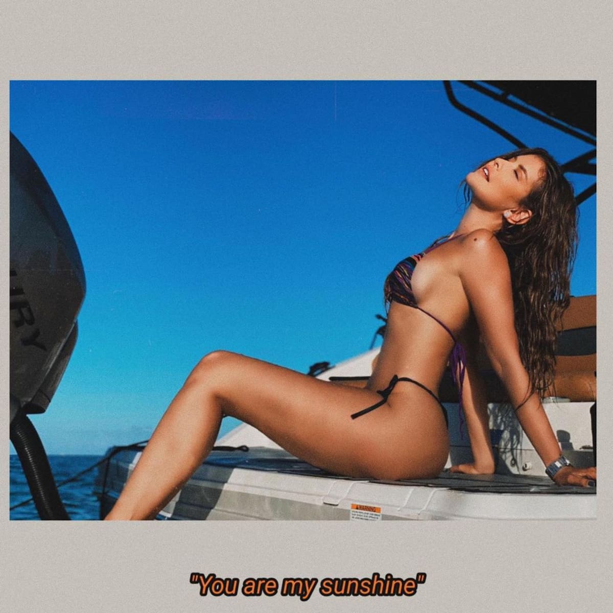 En las instantáneas se puede ver a la modelo arriba de un yate tomando el Sol mientras disfruta la sesión de fotos, aunque en otras fotografías se observa adentro del mar luciendo sus curvas mojadas.