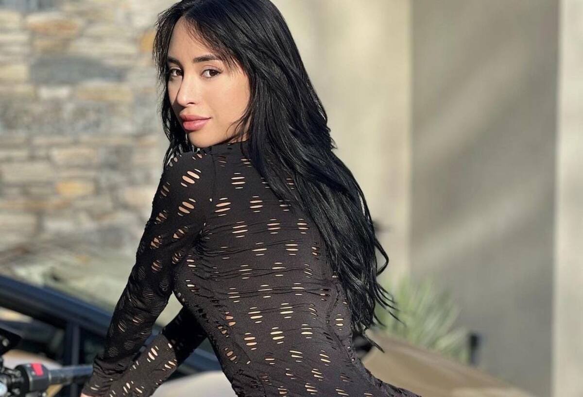 En la primera imagen la socialité se muestra justo de frente, viendo fijamente a la cámara y resaltando sus grandes encantos con su atuendo.