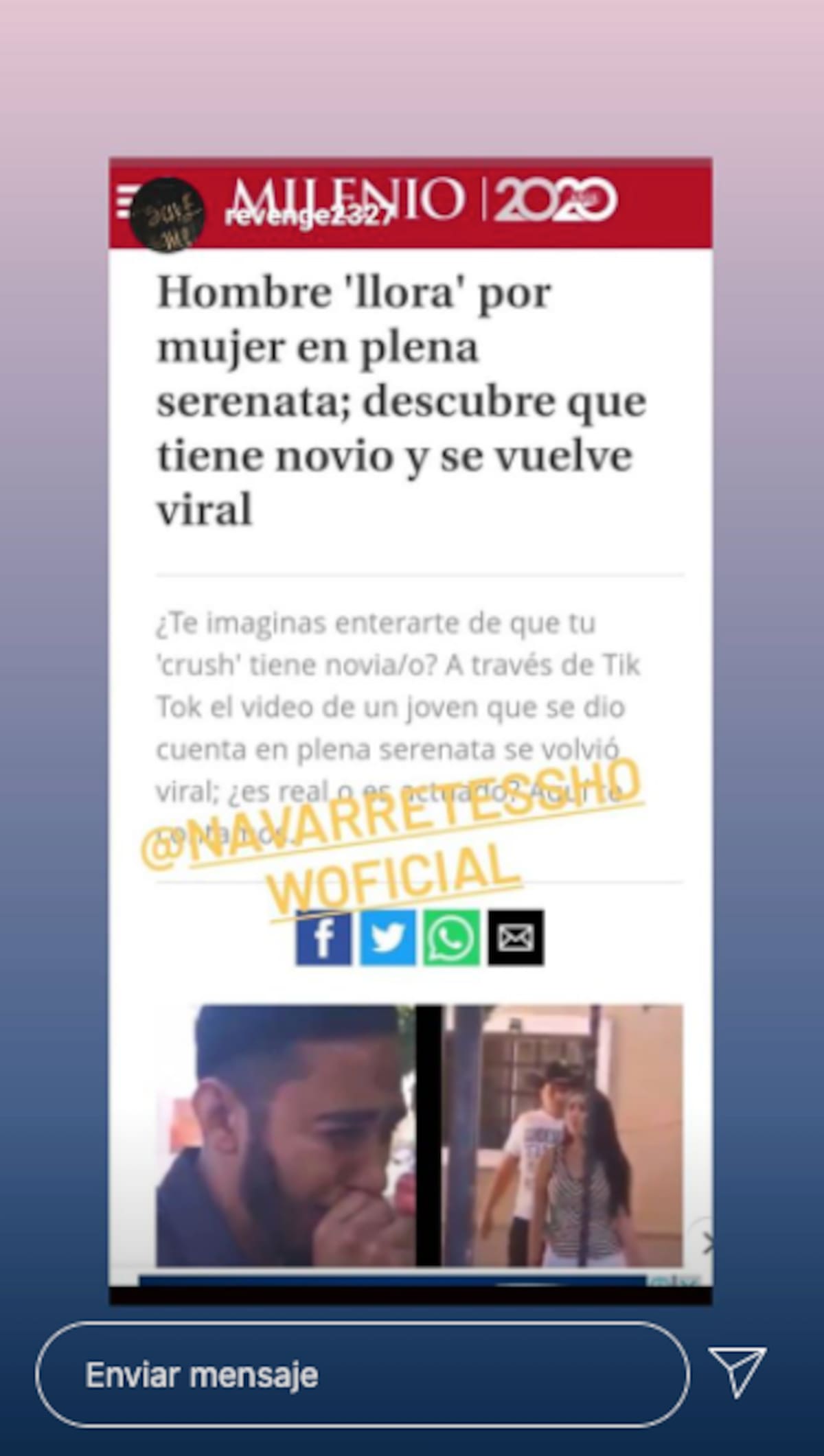Héctor Navarrete, quien es el "soldado caído" del clip, compartió en sus instastories todas las publicaciones que se han compartido de "El video de Mariana", agradeciendo a sus fans por el apoyo.