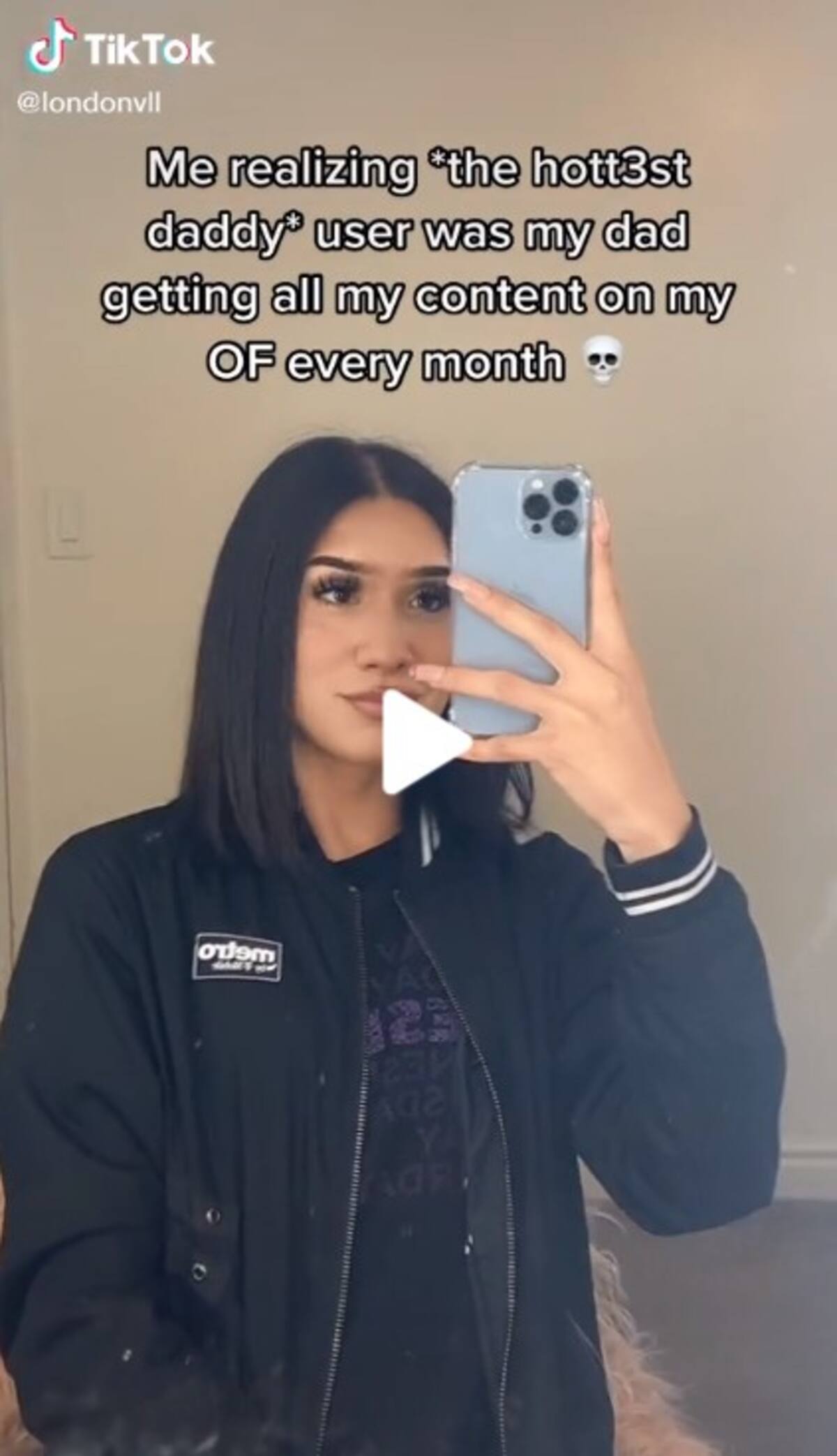 Yo dándome cuenta que el usuario @thehott3stdaddy era mi papá y está viendo todo mi contenido en OnlyFans cada mes”, escribió la chica junto al video.