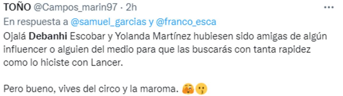 Asimismo, indicaron que ante el caso de Debanhi Escobar -la joven de 18 años, que desapareció el pasado 9 de abril y 13 días después fue encontrado su cuerpo al interior de la cisterna del motel Nueva Castilla, en Nuevo León, posiblemente asesinada- Samuel García no intervino inmediatamente.