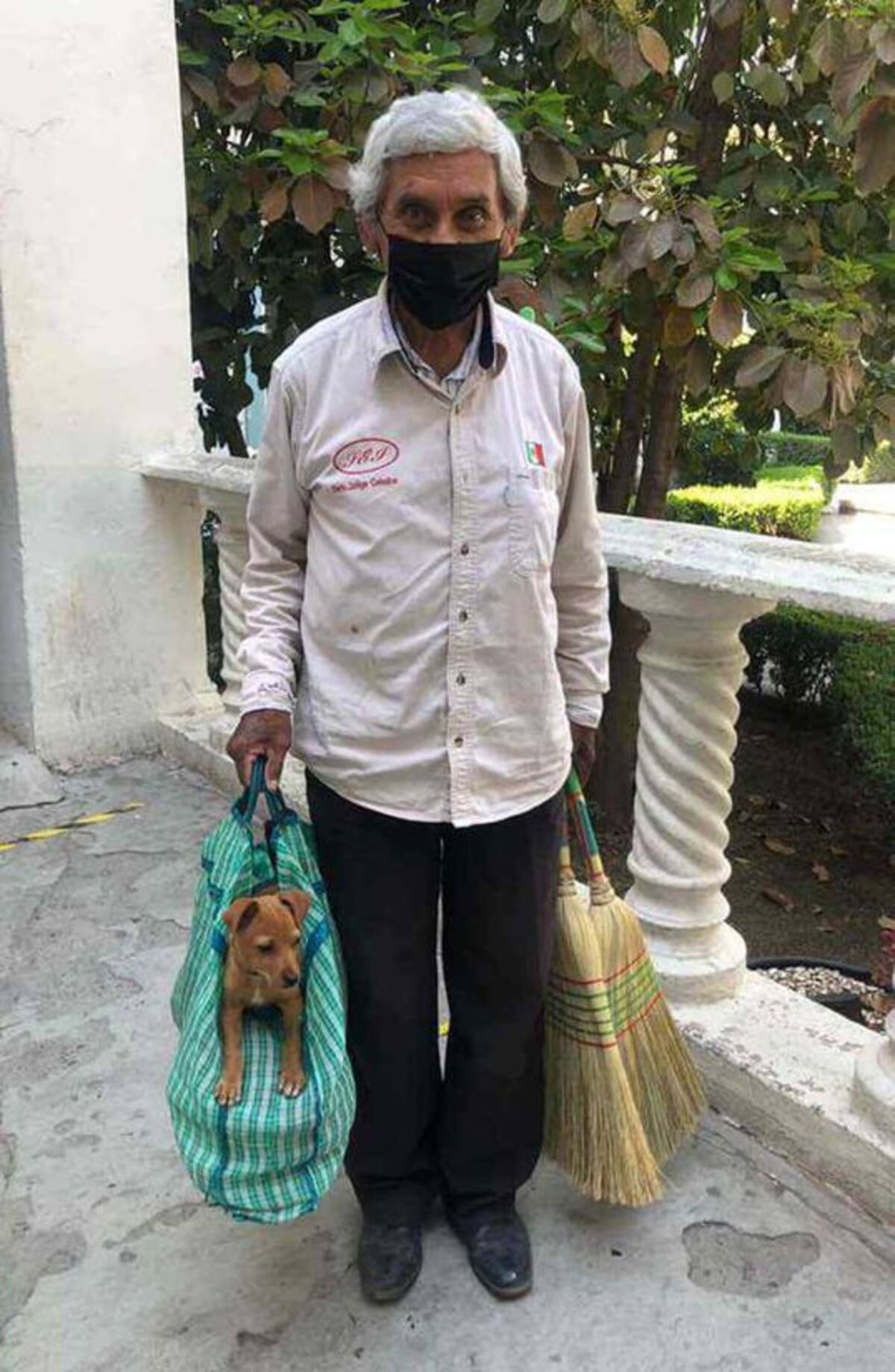 De hecho, en las fotos que se hicieron virales se ve a Don Cirilo cargando con una de sus manos un par de escobas y con la otra una bolsa en donde viaja “Chiquito”.