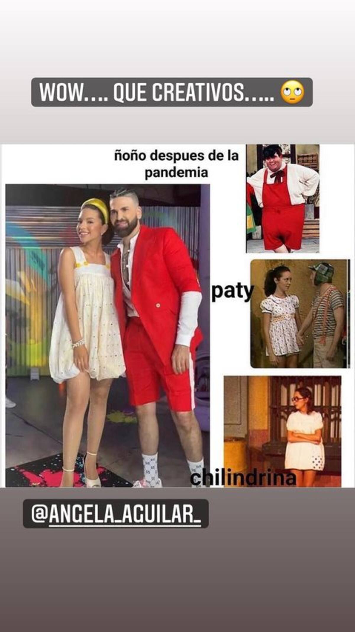 Horas después se tomó una foto con Ángela Aguilar y las burlas comenzaron a crecer, ya que los internautas compararon a la hija de Pepe Aguilar con “La Chilindrina” debido a que iba vestida con un vestido, diadema y tacones.