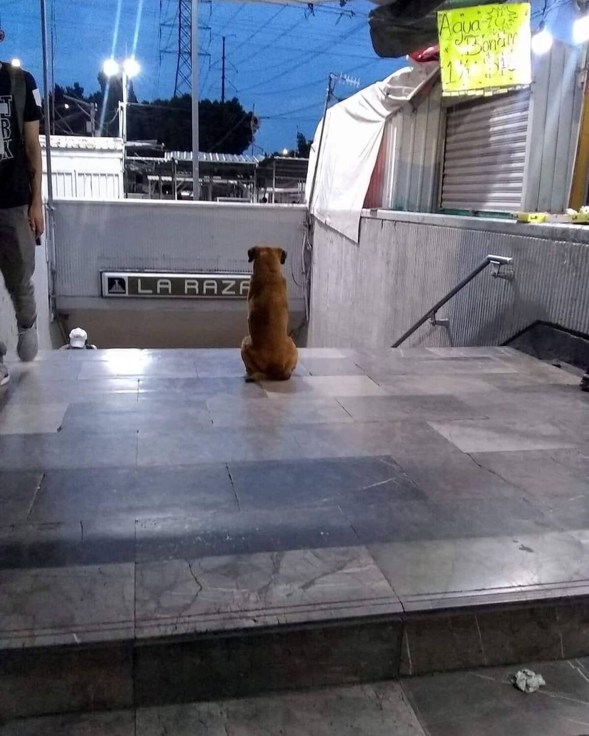 La instantánea publicada en la cuenta de Instagram de “@cronicas_chilangas_cdmx” señala que el lomito a quien bautizaron con “Hachiko La Raza” o “Hachiko Mexicano” espera todos los días a su dueña en las escaleras de la estación de La Raza, correspondiente a la línea 3 y 5 de la alcaldía Gustavo A. Madero.