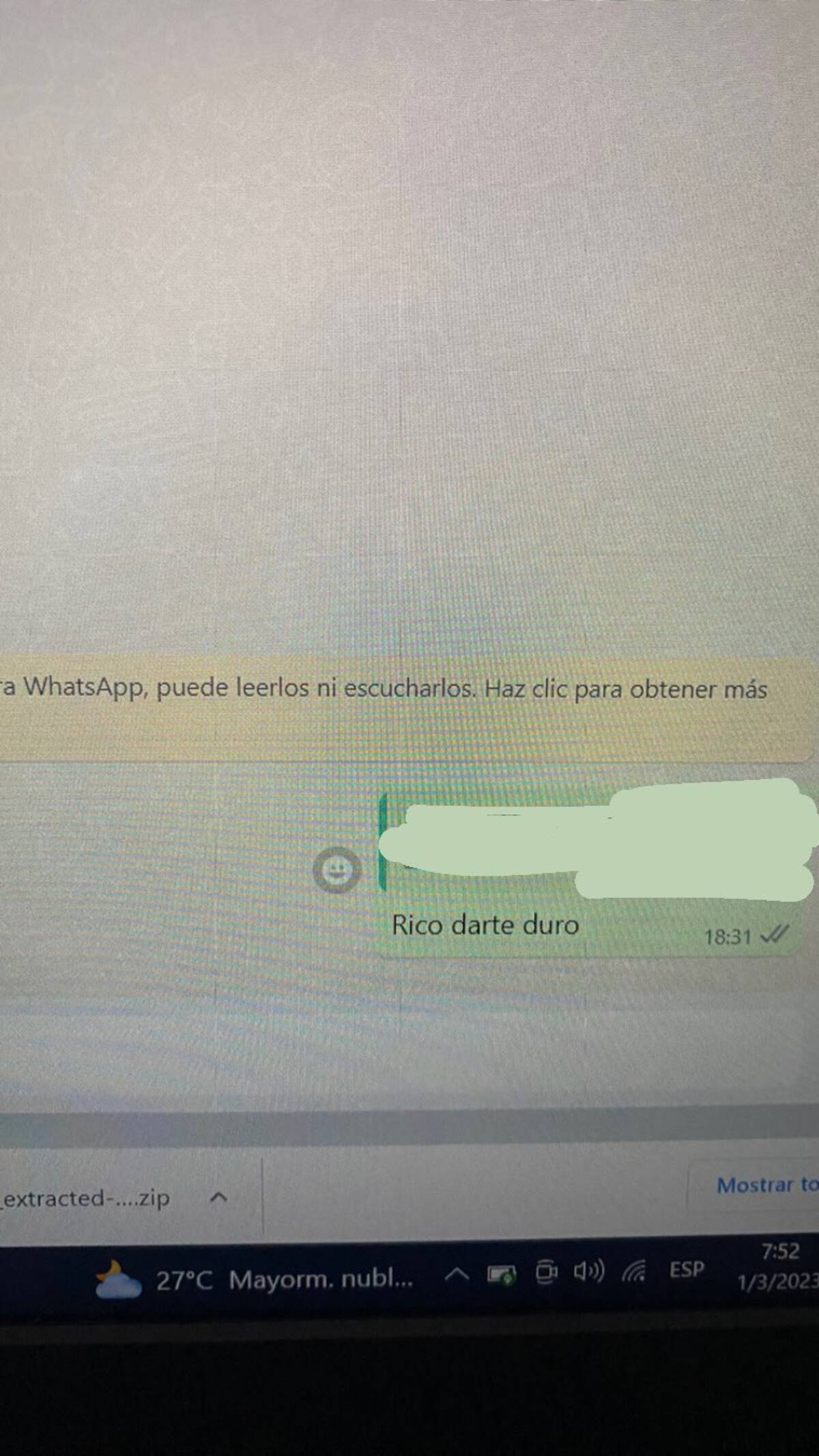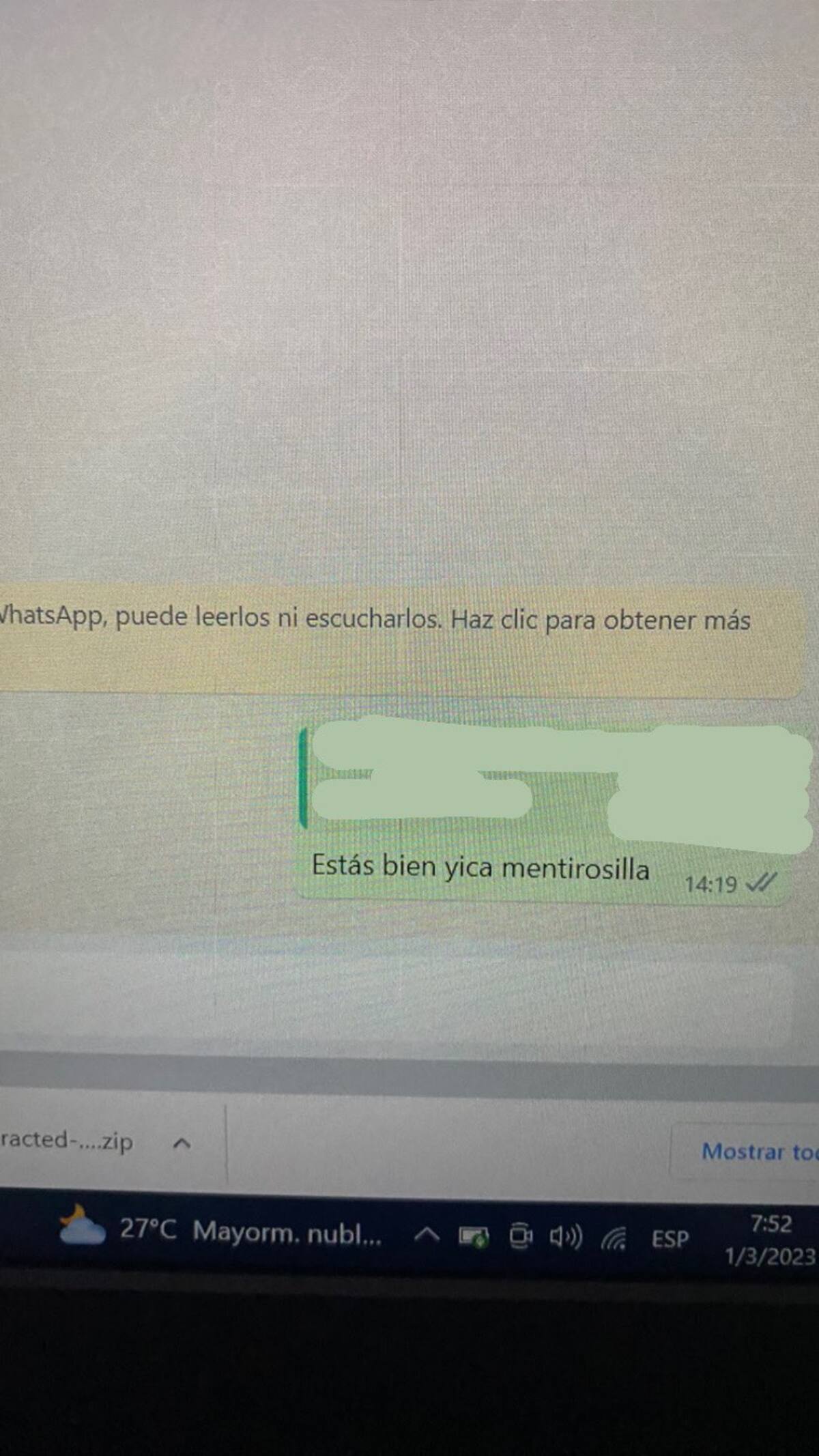 De la misma manera, ventiló la clase de mensajes que su ex pareja le manda a la otra persona donde se leía: “Estas bien rica mentirosilla”, “rico darte duro”, “¿cuándo pues?” y “peguemos un palito de amistad”.