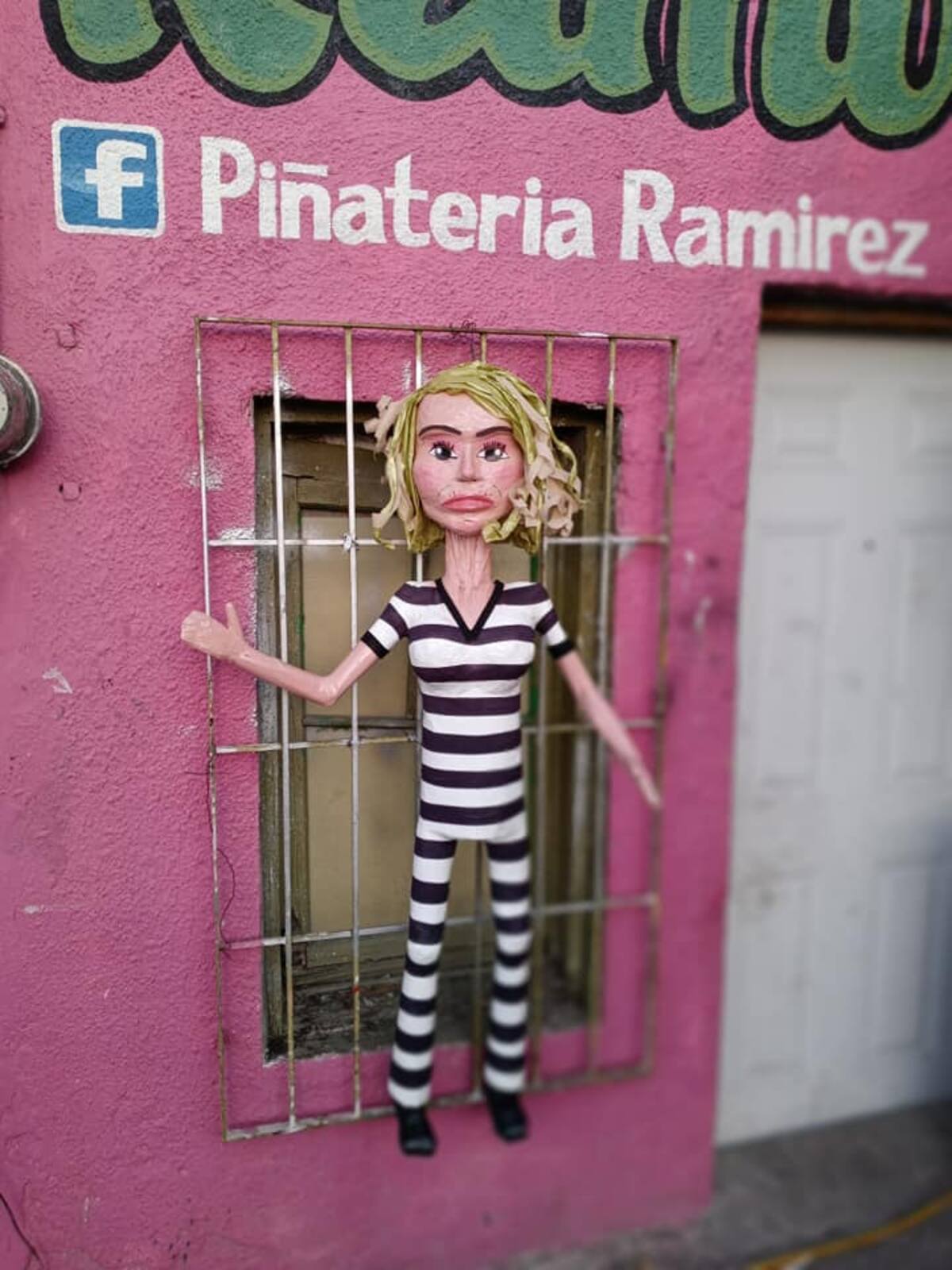 A través de su perfil de Instagram, el negocio publicó una serie de fotos en donde aparece la piñata de la conductora de Televisa con un traje de prisionera.