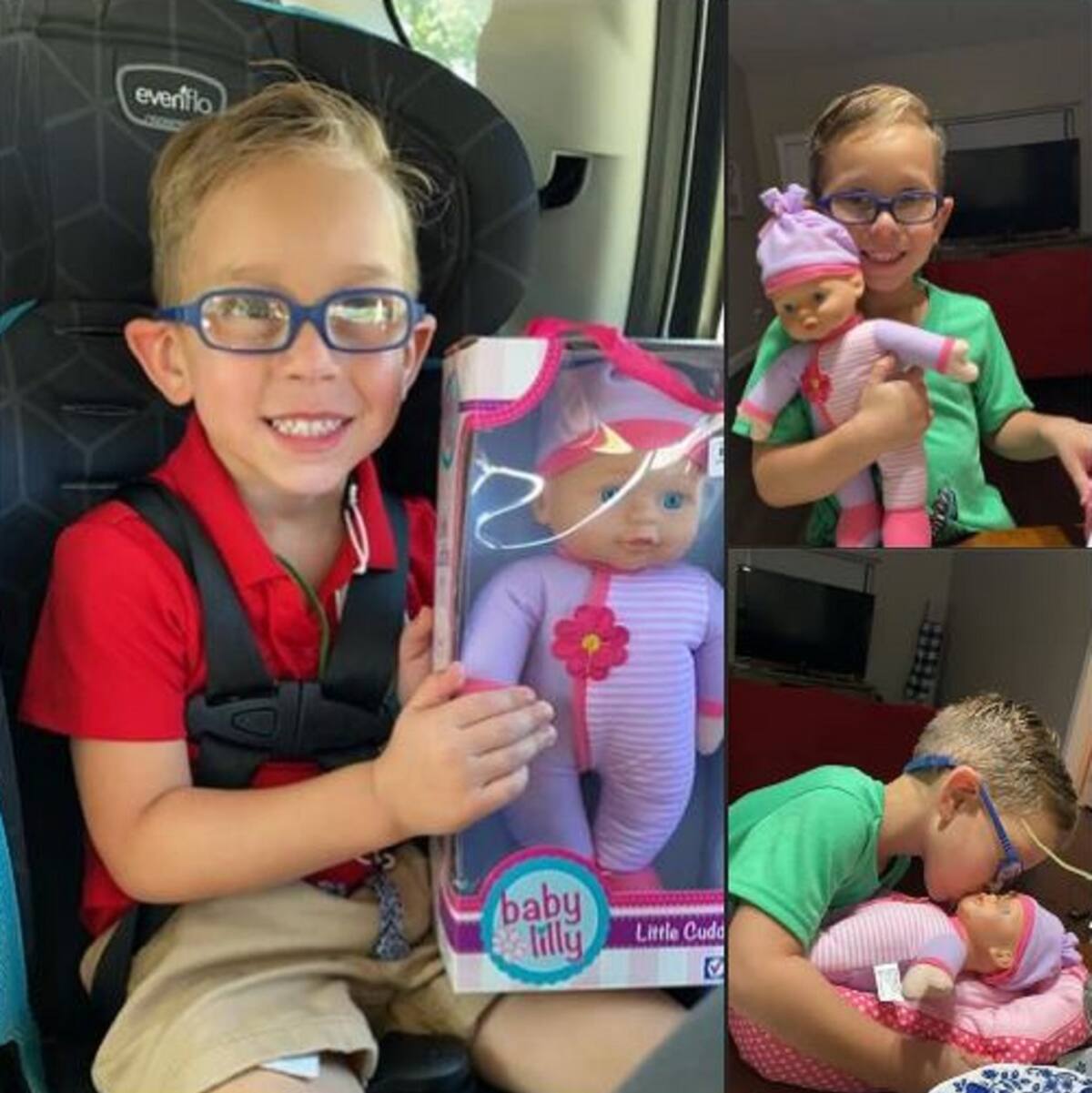 Me pidió que le comprara una muñeca porque su hermana no le presta la suya y él quiere ser un gran padre, como lo es el suyo (papá del niño)”, escribió Rocío. Asimismo, agregó que: “Le da el biberón, la abraza, le da besos y le dice cosas hermosas”.