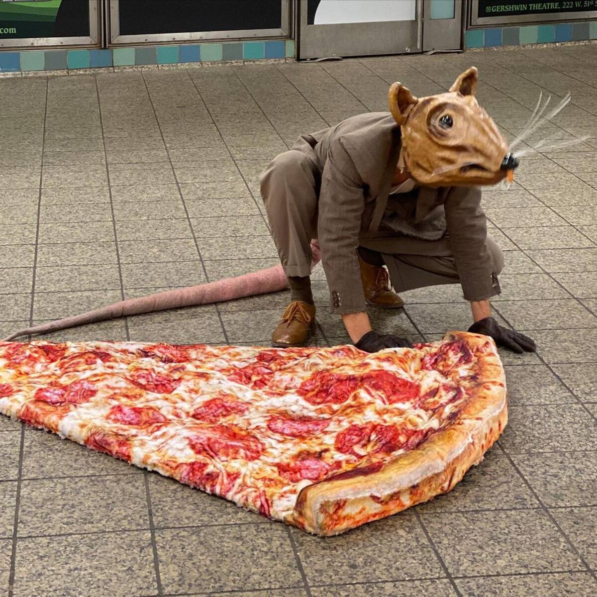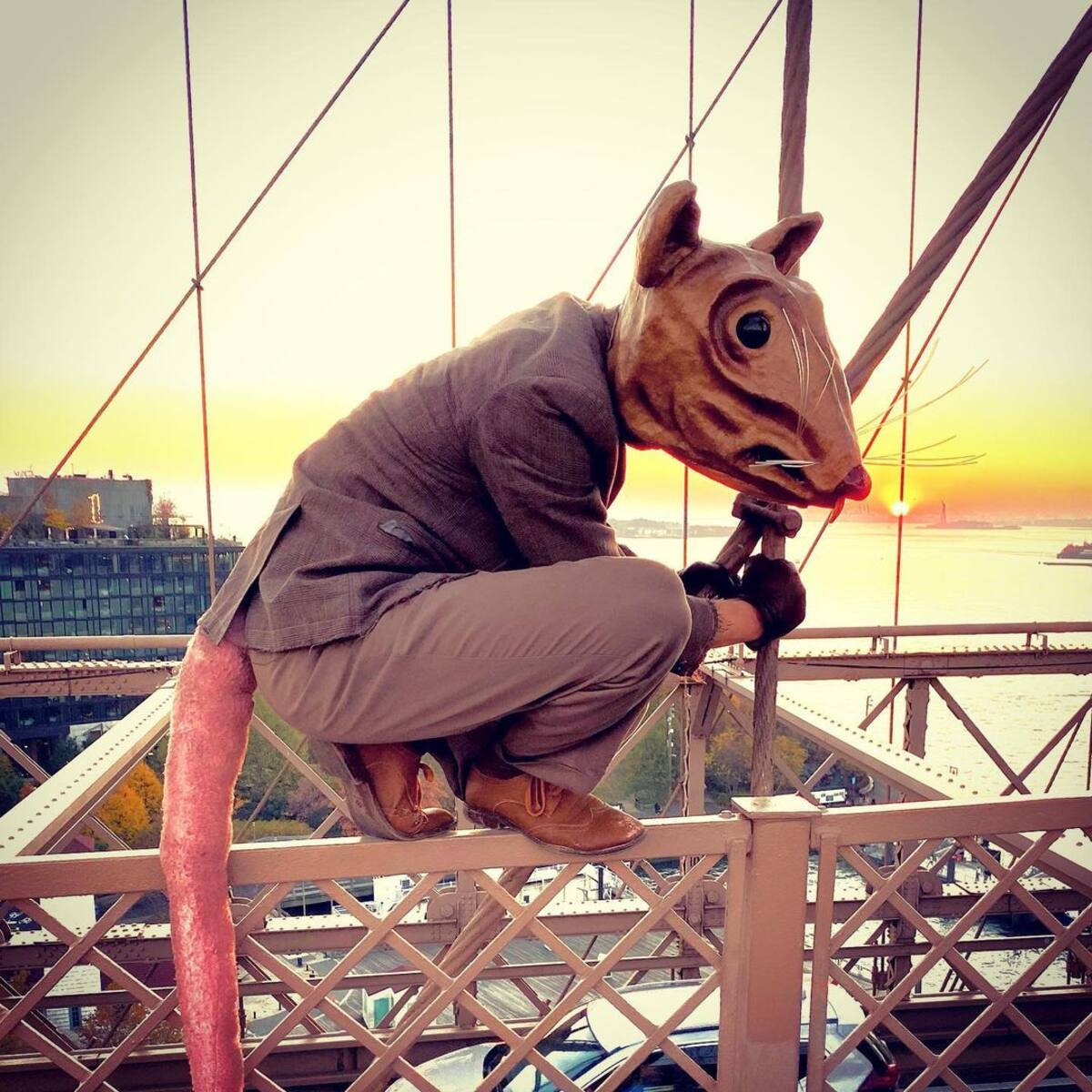 Pero no te asustes, se trata del artista de performance Jonothon Lyons, un hombre que se viste de rata, con un traje café, zapatos, cola y bigotes, que se dedica a realizar varias escenas en Nuevo York, con las cuales llama la atención de los espectadores.