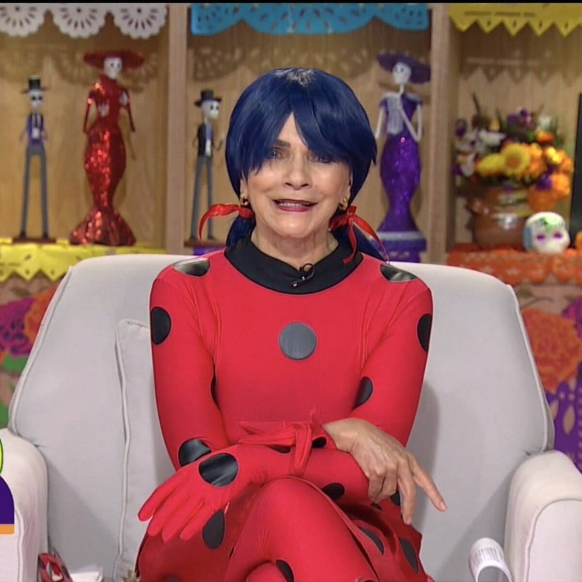 Sin embargo, la que llamó la atención fue la periodista de 73 años, quien se vistió como Ladybug, una superheroína que tiene el poder de la creación.
