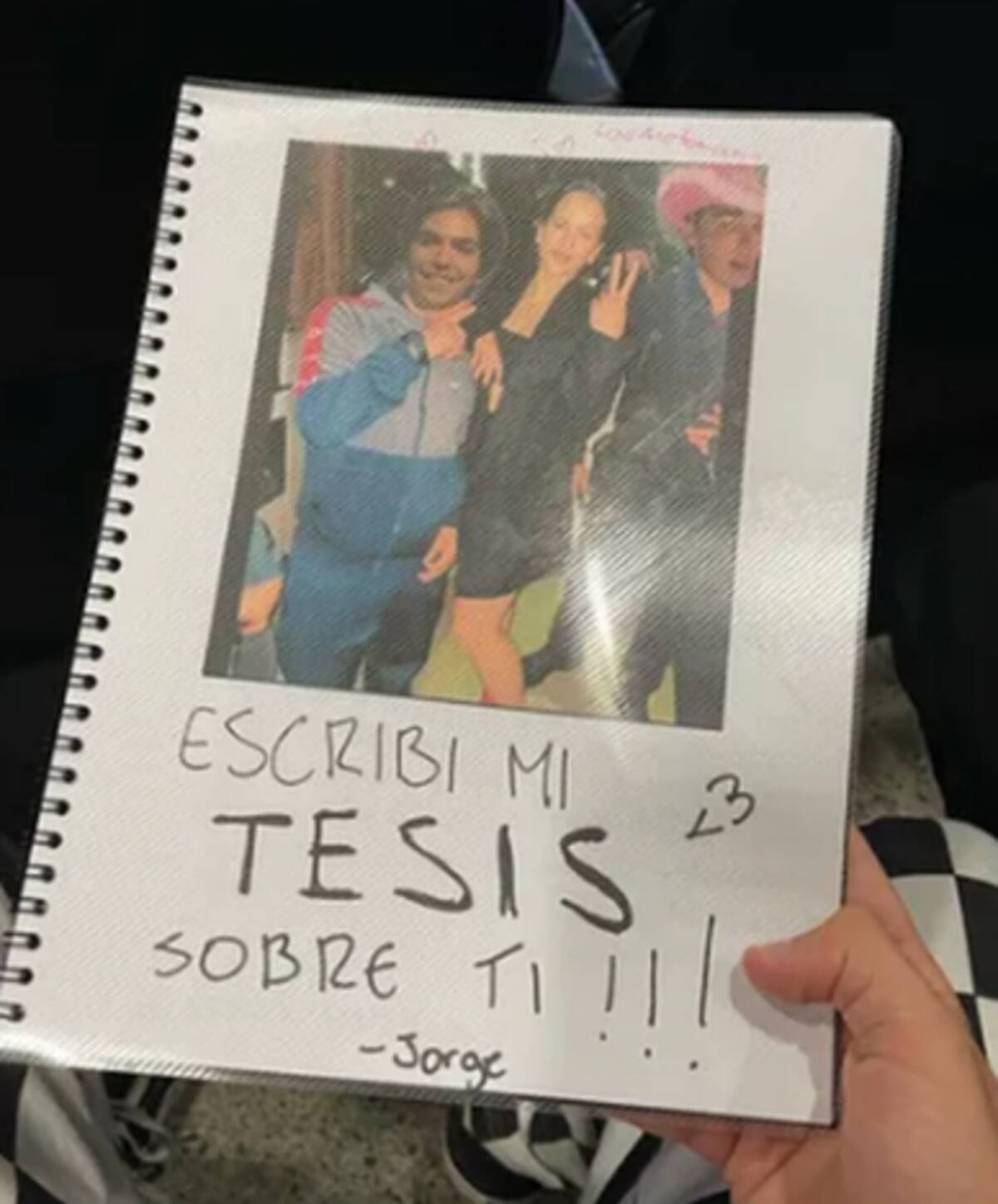 Desde el escenario, la intérprete de "Con altura", leyó un cartel que decía: "Escribí mi tesis sobre ti".