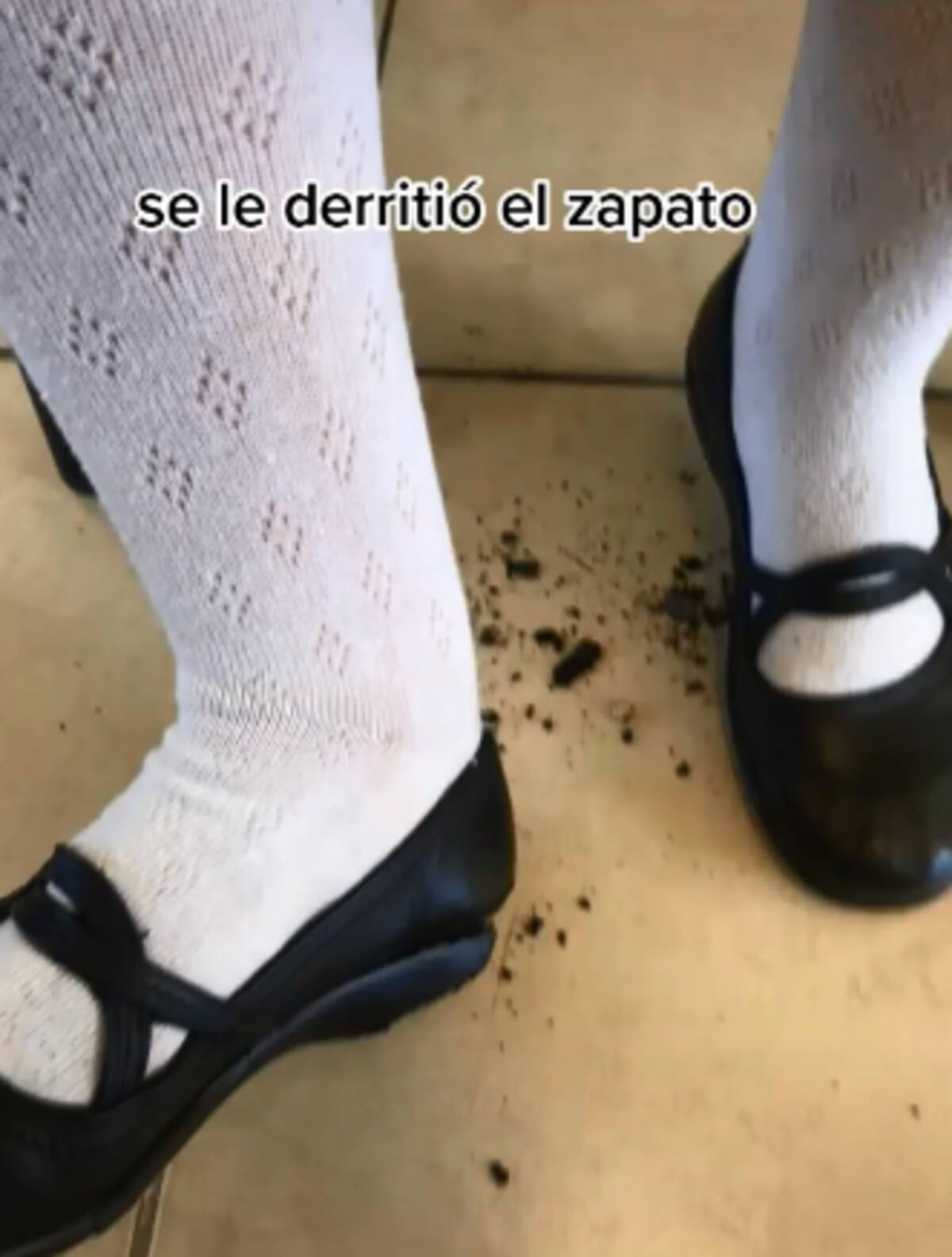 En medio del curso escolar, la alumna comenzó a sentir un tanto "raros" sus pasos, al revisar qué ocurría en sus pies, se percató que su calzado estaba pastoso y había residuos de él sobre el pavimento.