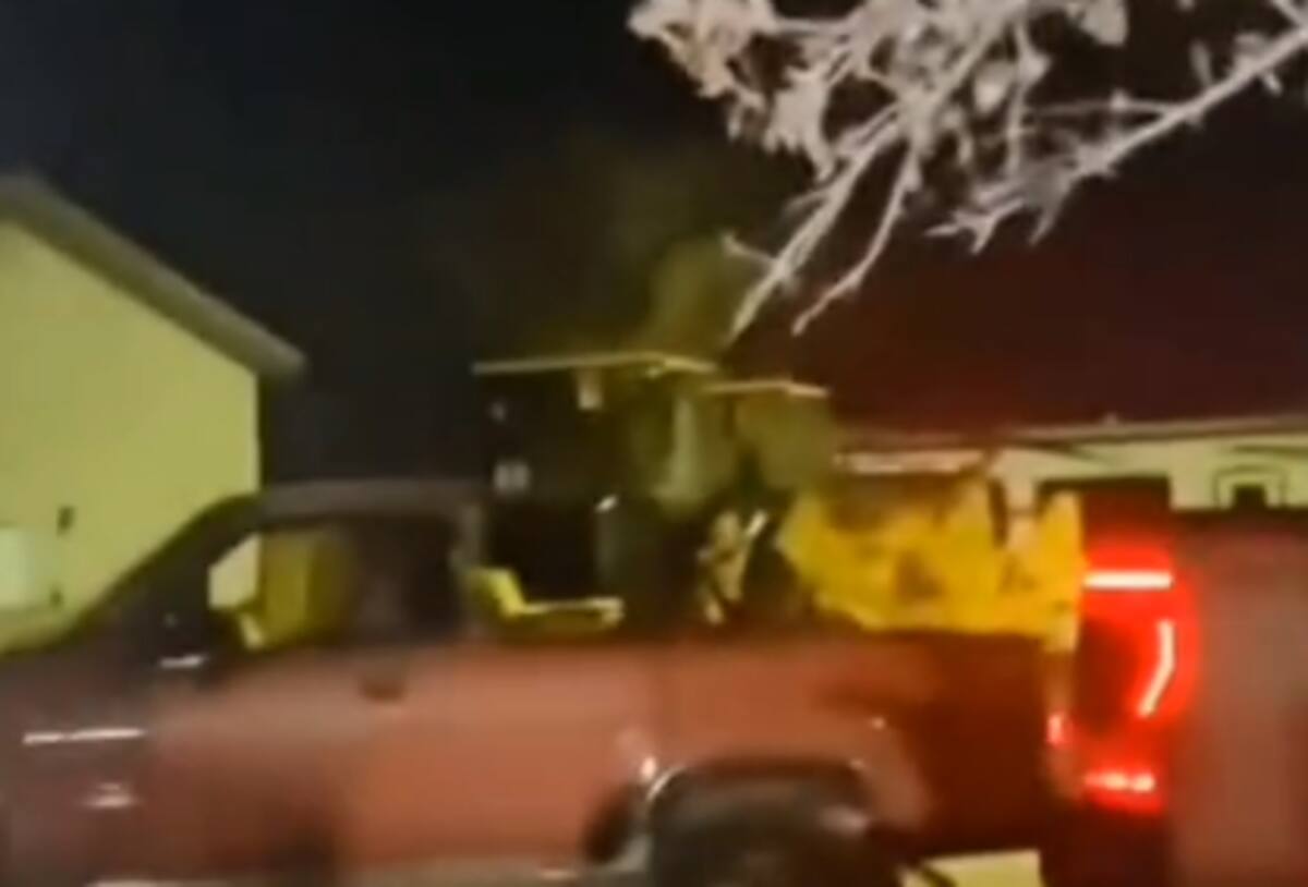 Sin embargo, parece ser que se encuentran con algo extraño, por lo que rápidamente regresan entrada del patio trasero. La mujer encargada de la cámara decide asomarse y al hacer zoom a unas grúas estacionadas, logra captar a dos supuestas figuras humanoides de gran tamaño.