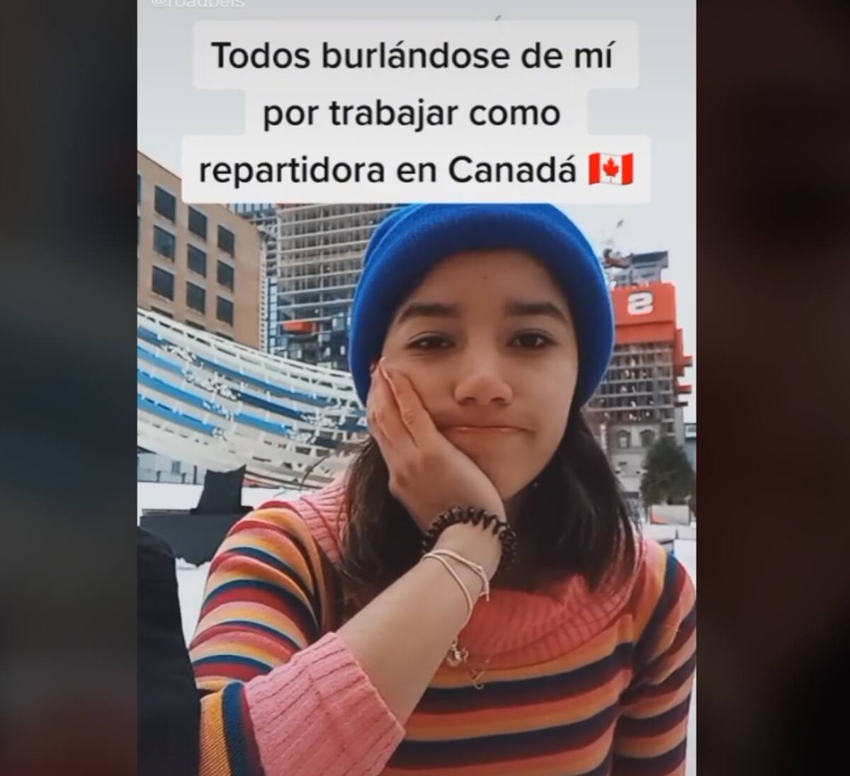 Todos burlándose de mí por trabajar como repartidora en Canadá, pero gano sus quincenas en dos días”, expresa la joven.