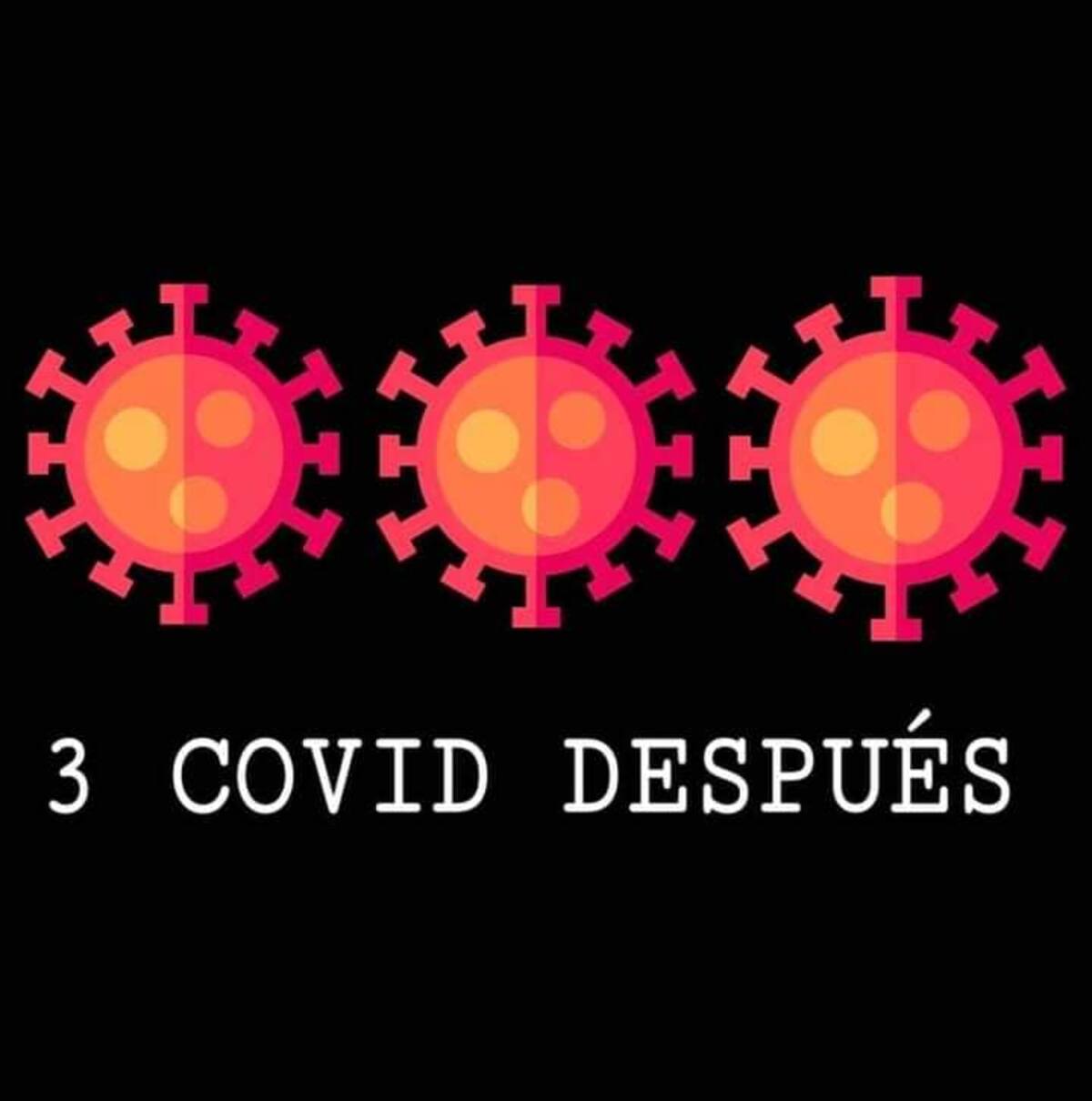 En una siguiente instantánea que fue titulada: “Tres Covid después”, haciendo alusión a los memes de tres doritos después, se ven tres figuras del coronavirus en color rojo.