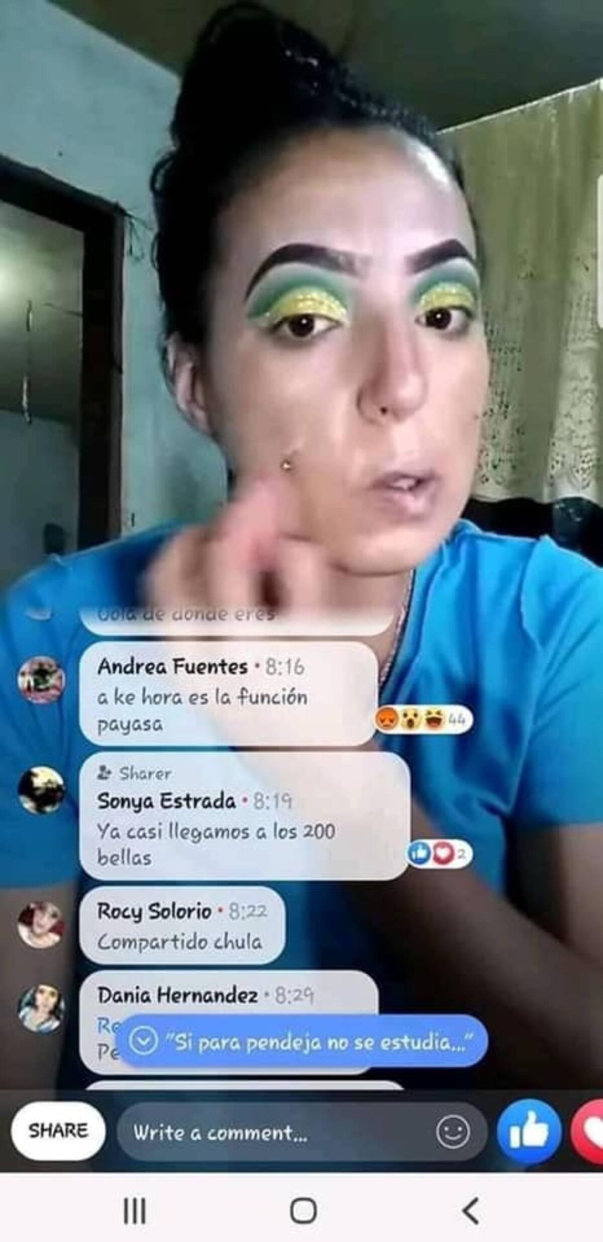 “¿A qué hora es la función, payasa?”, “si para p*ndeja no se estudia”, “propósitos de fealdad”, “corriente”, son algunos de los comentarios que se podían leer en el en vivo.