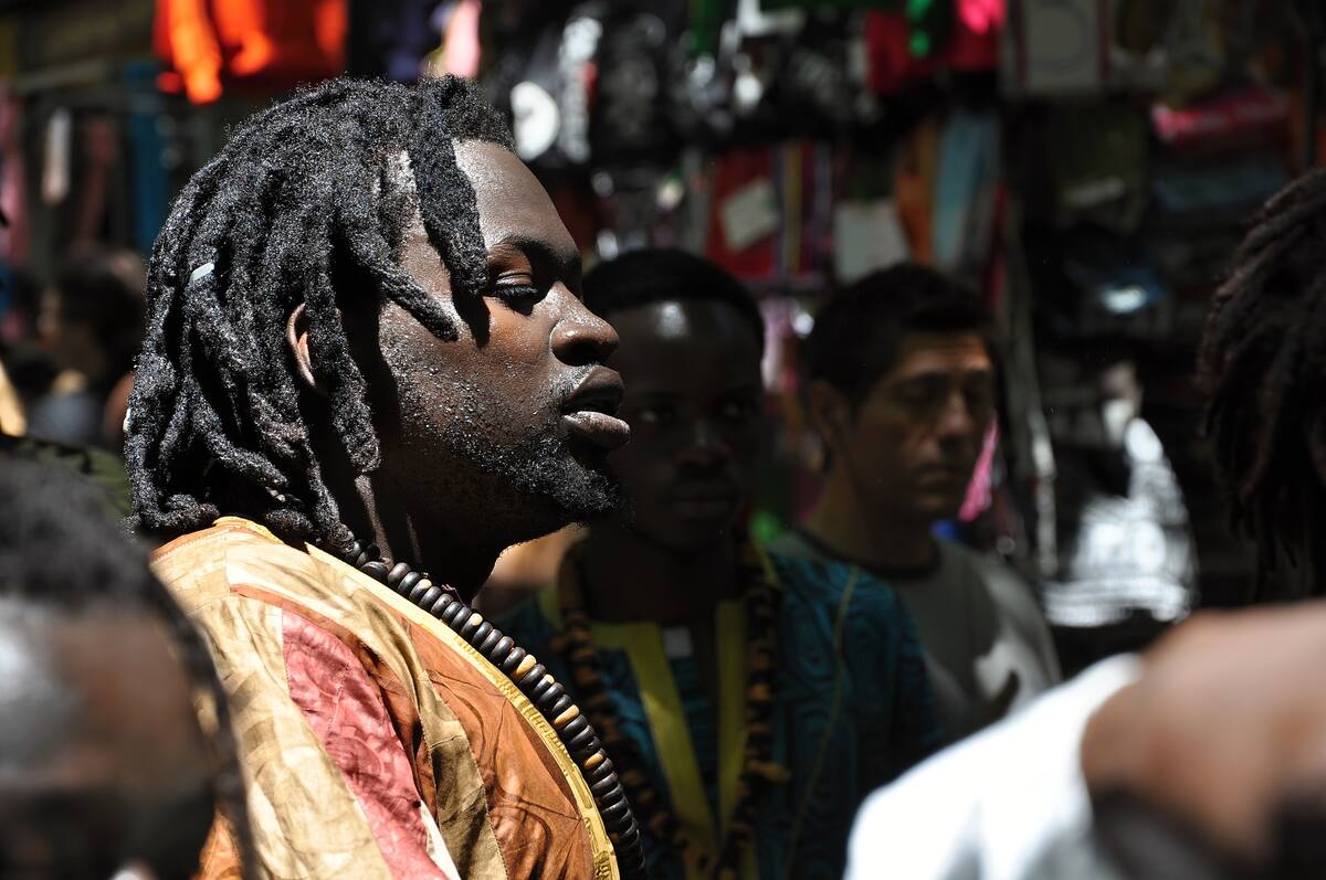 Al mirar más hacia abajo de las rastas del hombre, se puede ver que carga con una bolsa, pero al mirar con precisión, se puede detectar que es una bolsa hecha con su cabello.