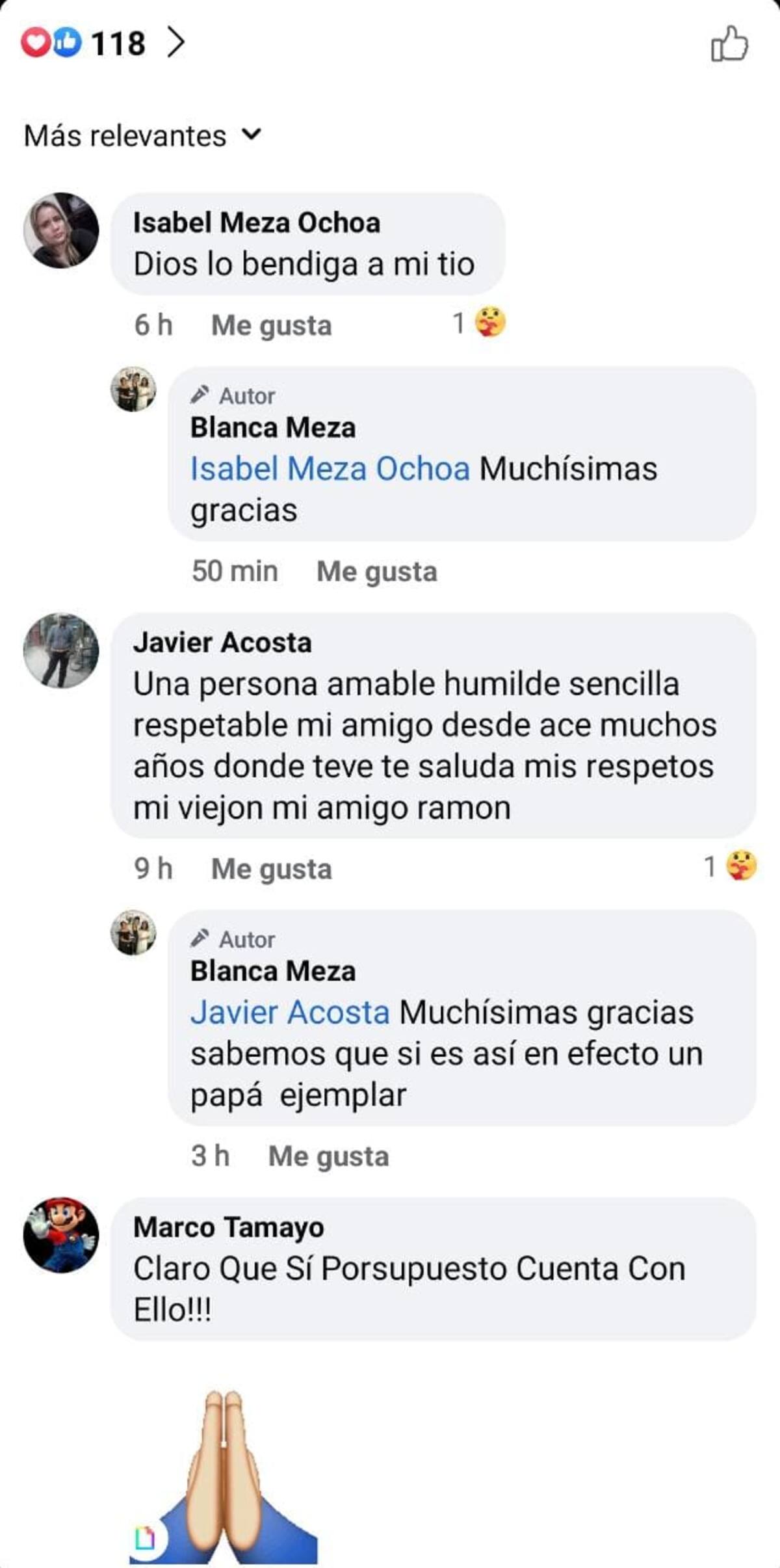 Dentro de la caja de los comentarios los buenos deseos no se hicieron esperar, ya que muchos contactos de Blanca destacaron la gran persona que era su padre.