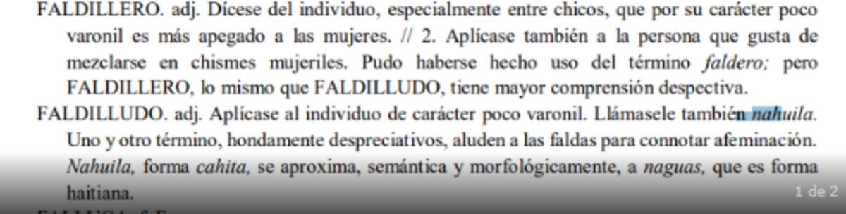 Este junto a “faldilludo” son adjetivos despectivos y aluden a las faldas para connotar afeminación.